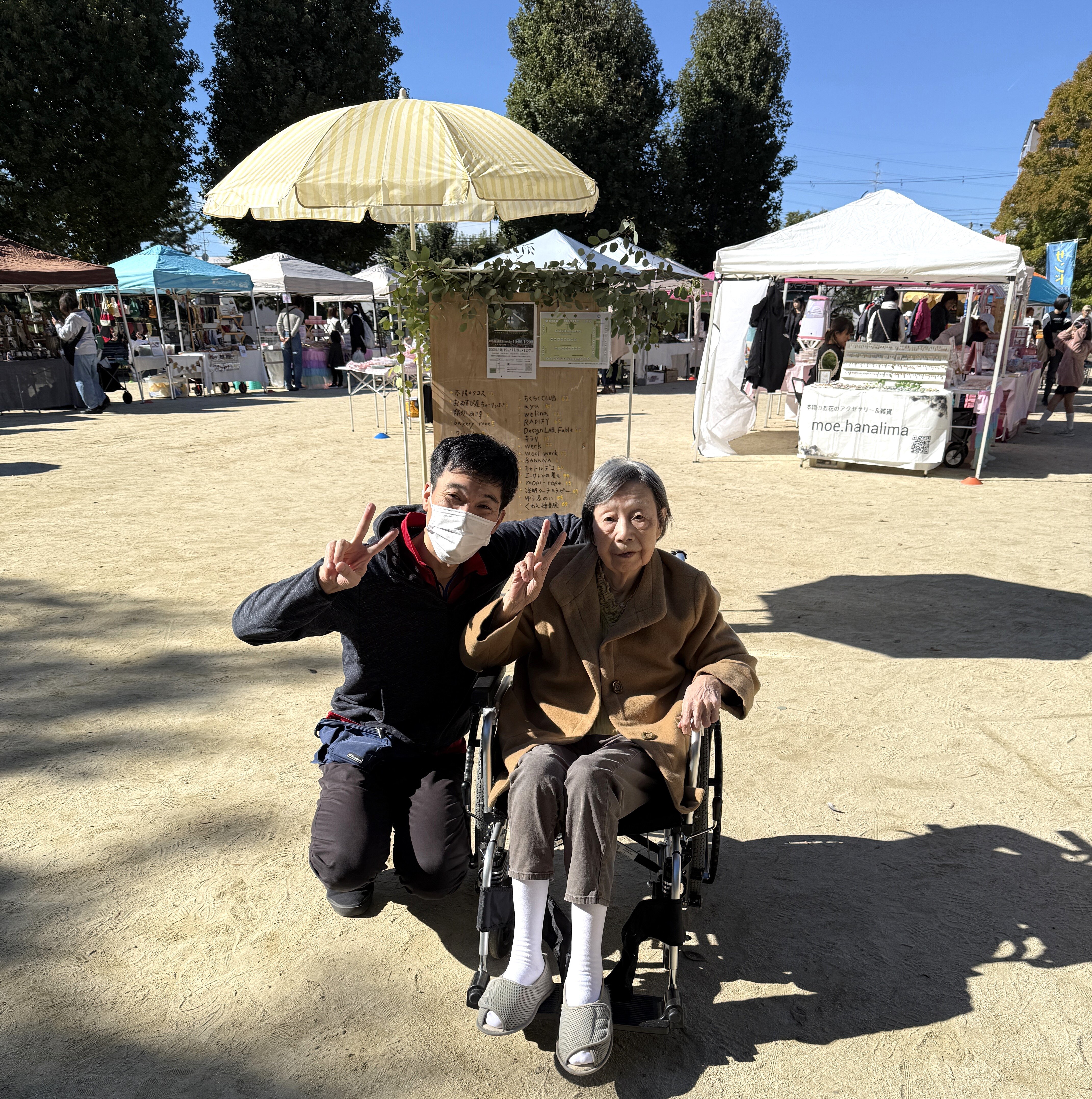 公園の広場で「いただきマルシェ」というフリーマーケットが開催されており賑わっていました。