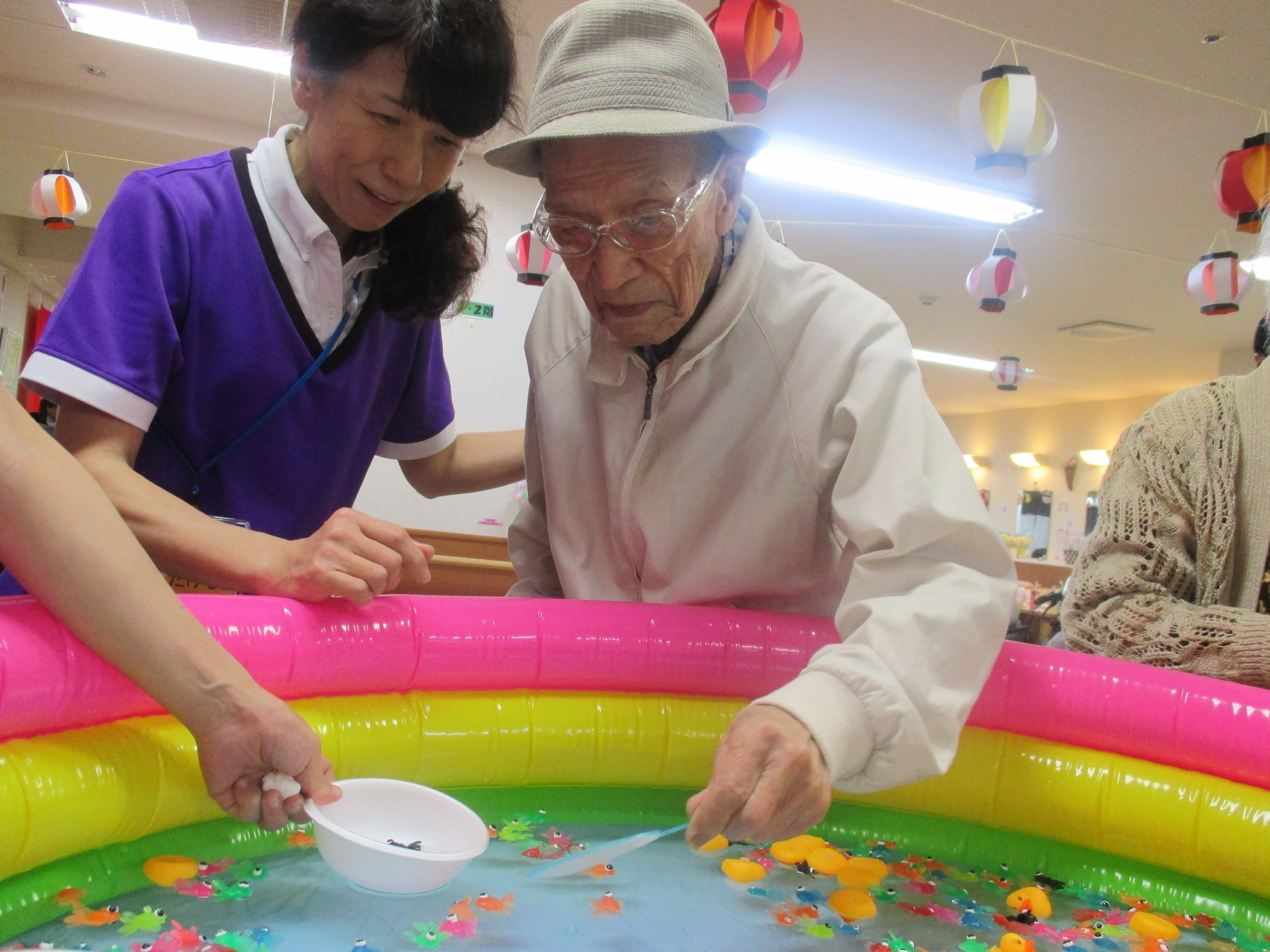 真剣な面持ちで金魚すくいにチャレンジしていらっしゃいますね!