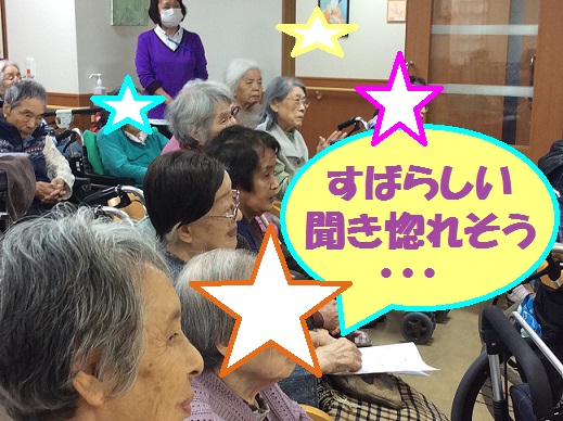 「春がきた」や「故郷」はご入居者やスタッフでメロディに合わせて唄いました。