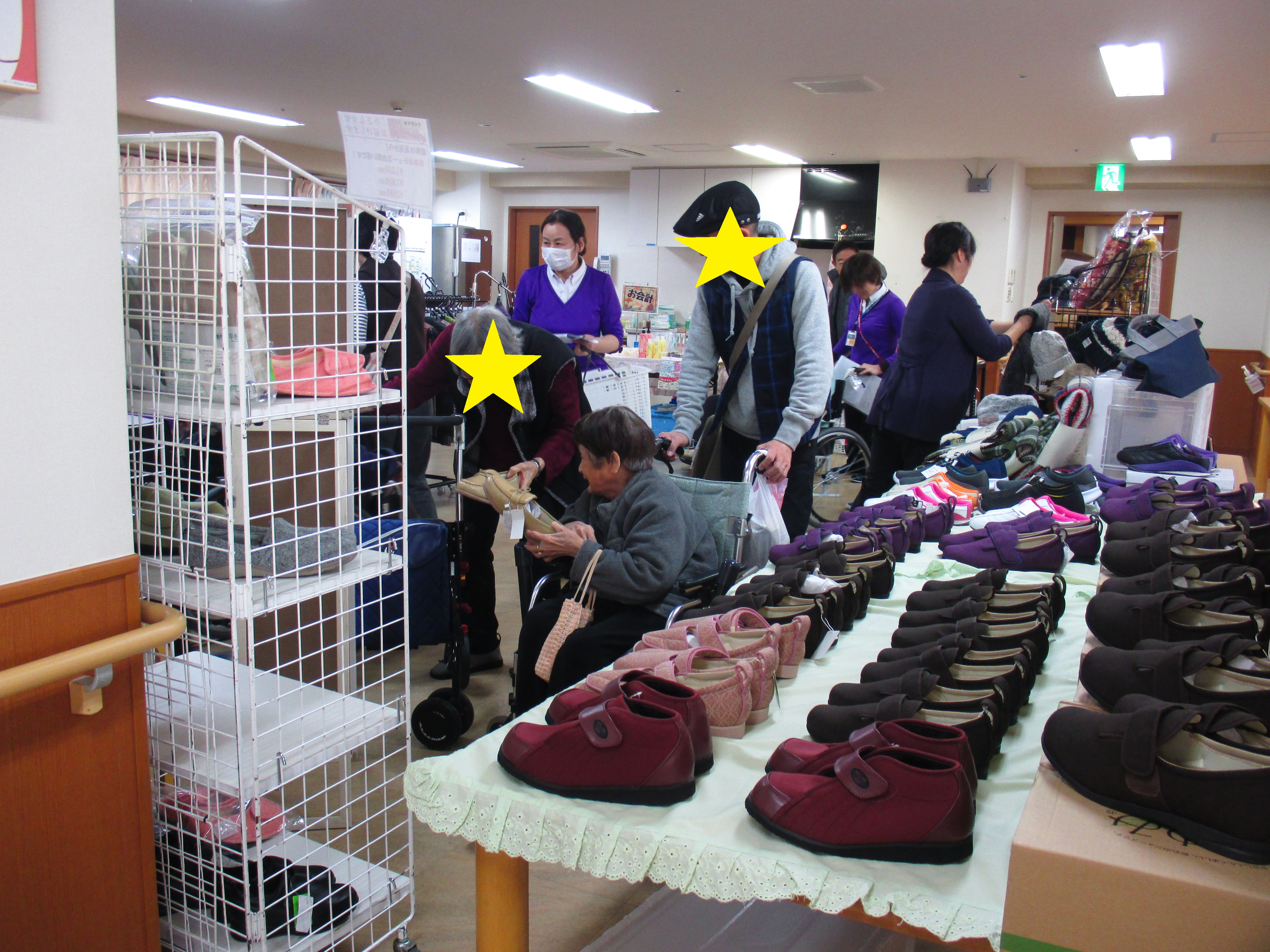 靴や衣類、お菓子や雑貨など、4階食堂を目一杯使った広めの会場でしたが、最後まで混雑してました。