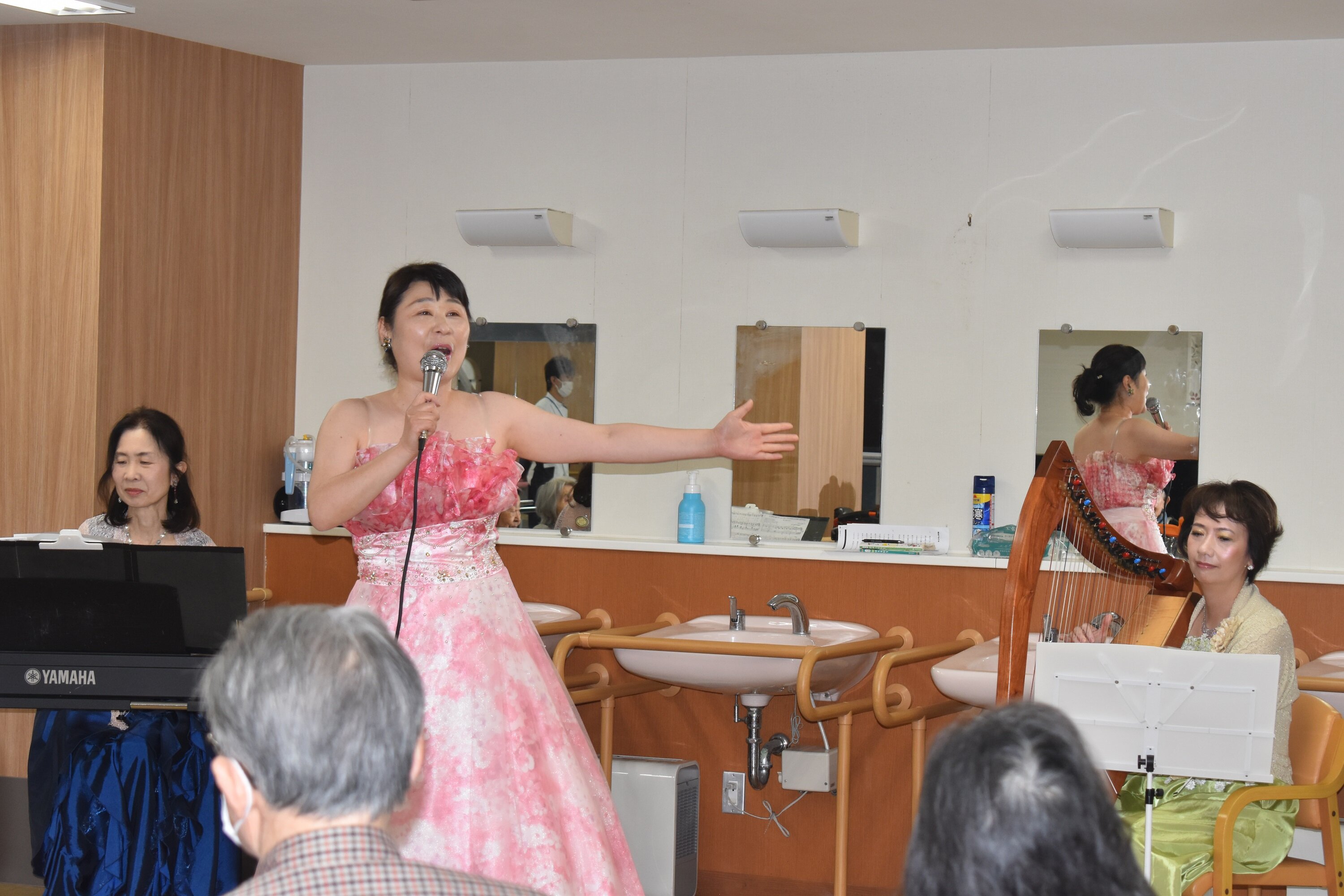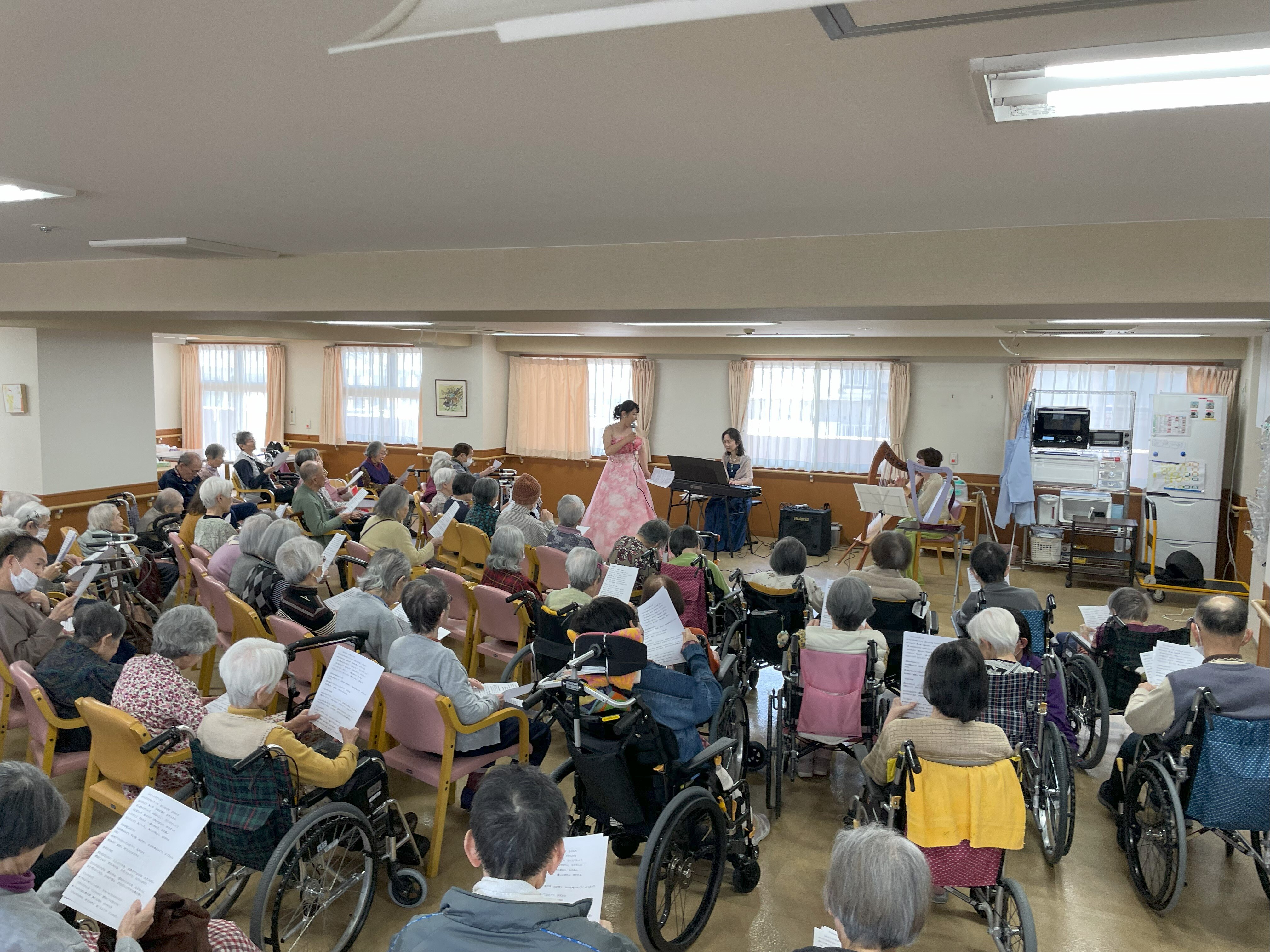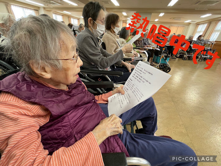 歌が始まるとほとんどのご入居者が歌いだされ、70名ほどの合唱となりました。