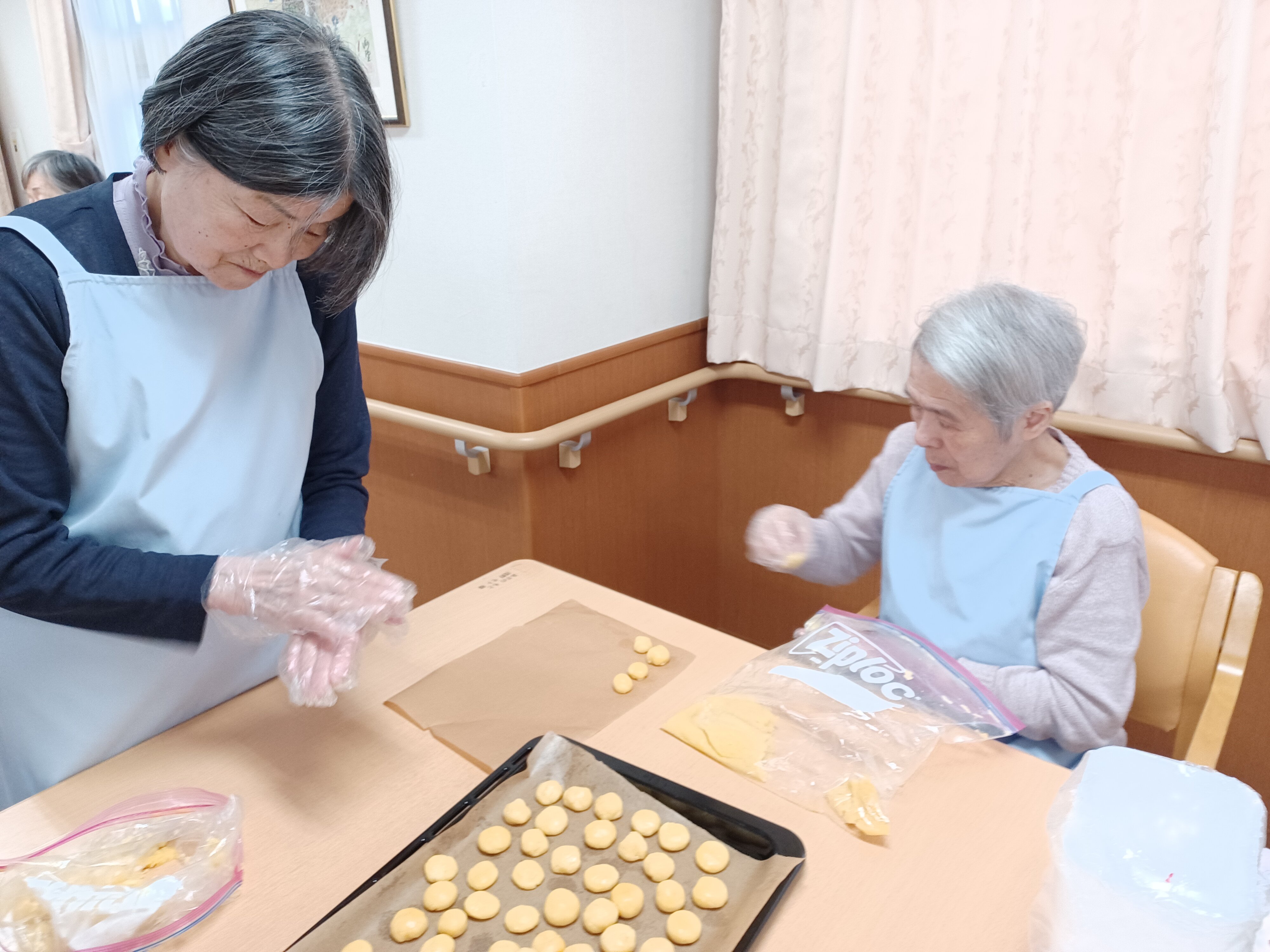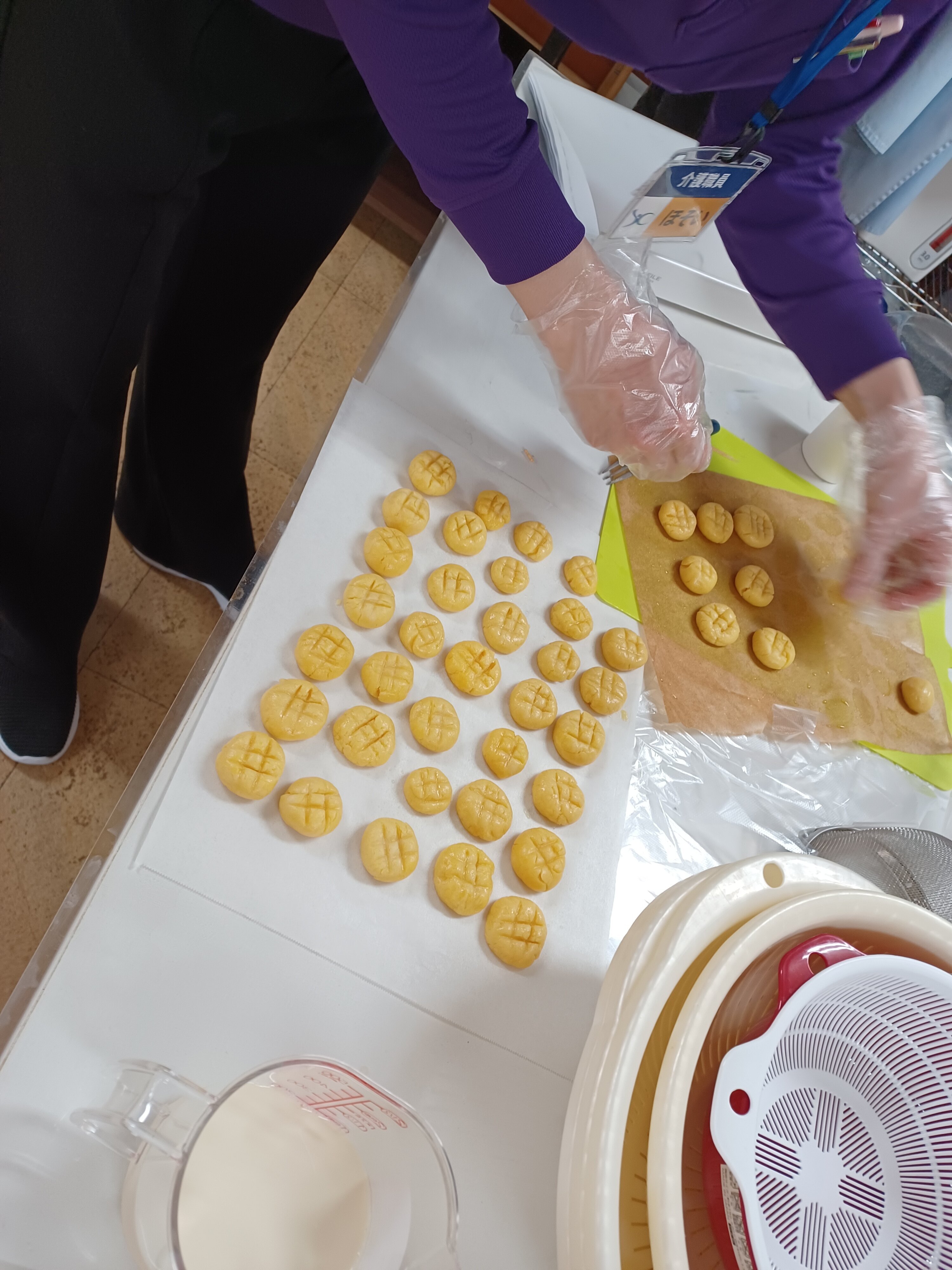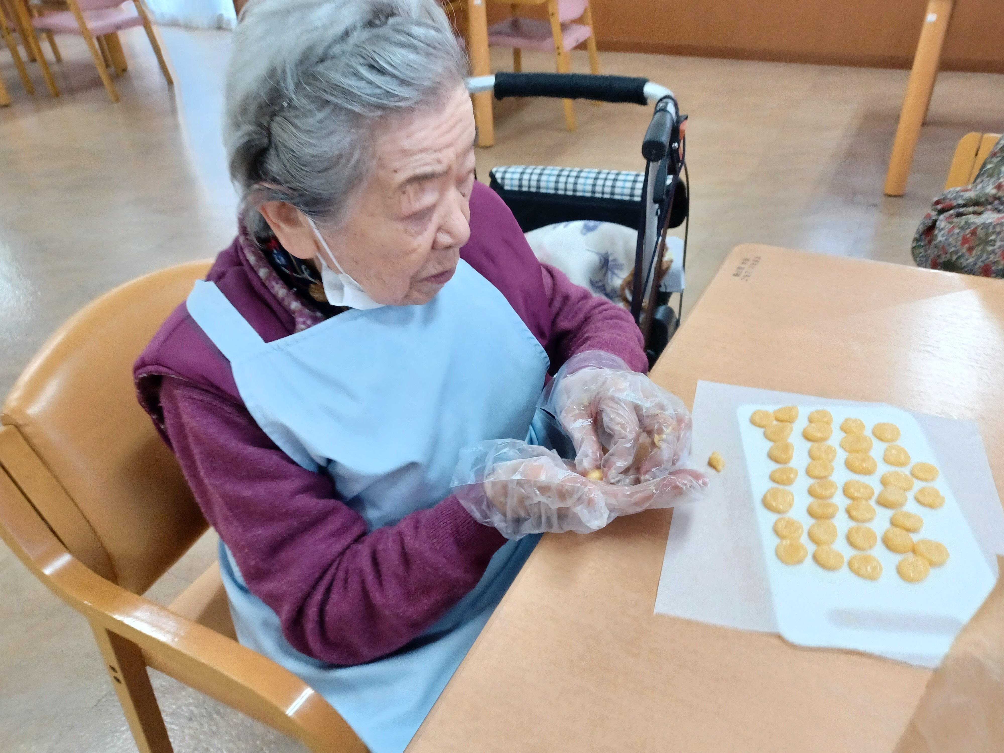 ご入居者にも一緒に生地を捏ねる、形を成型する等で参加していただきました☆