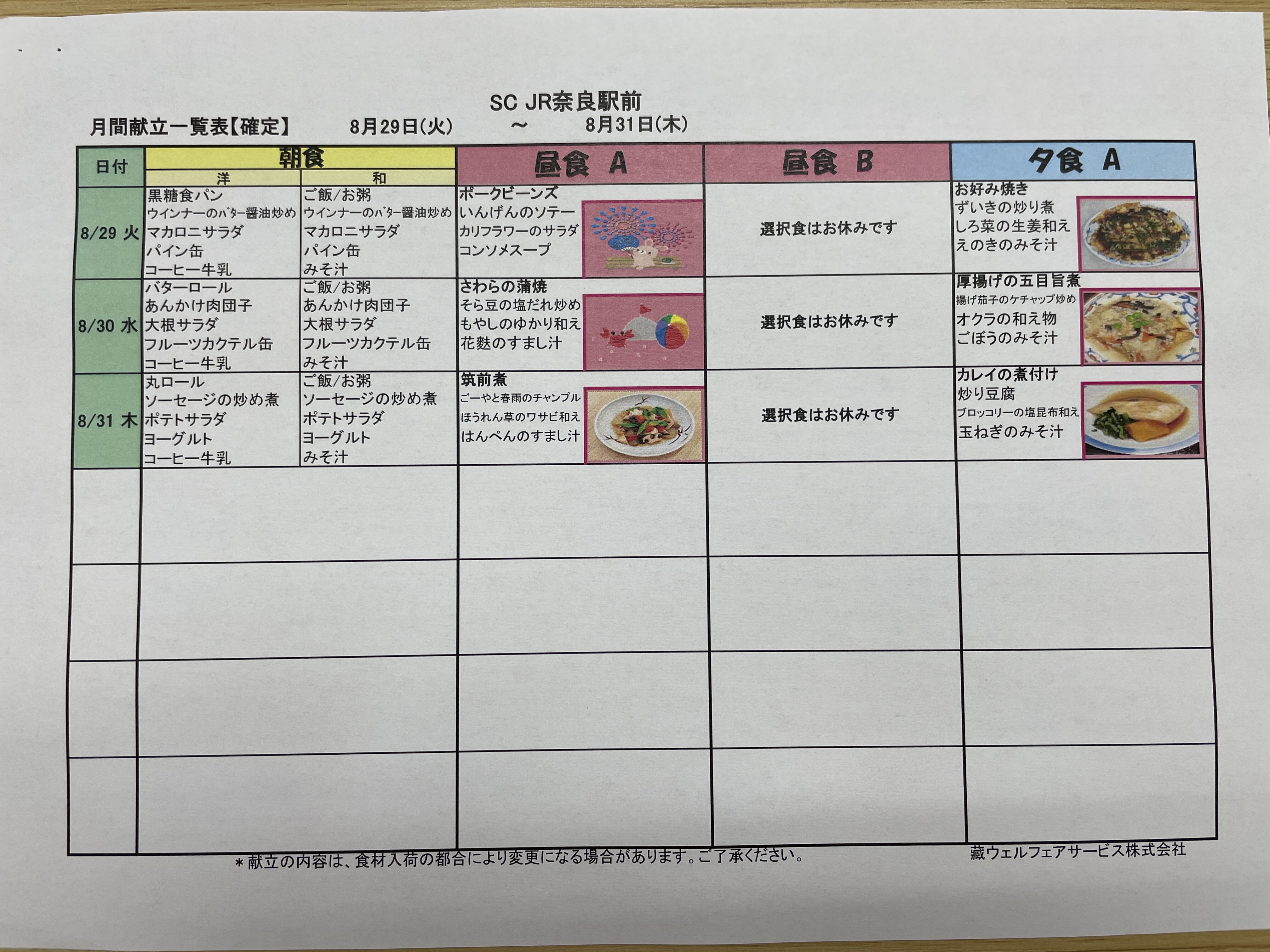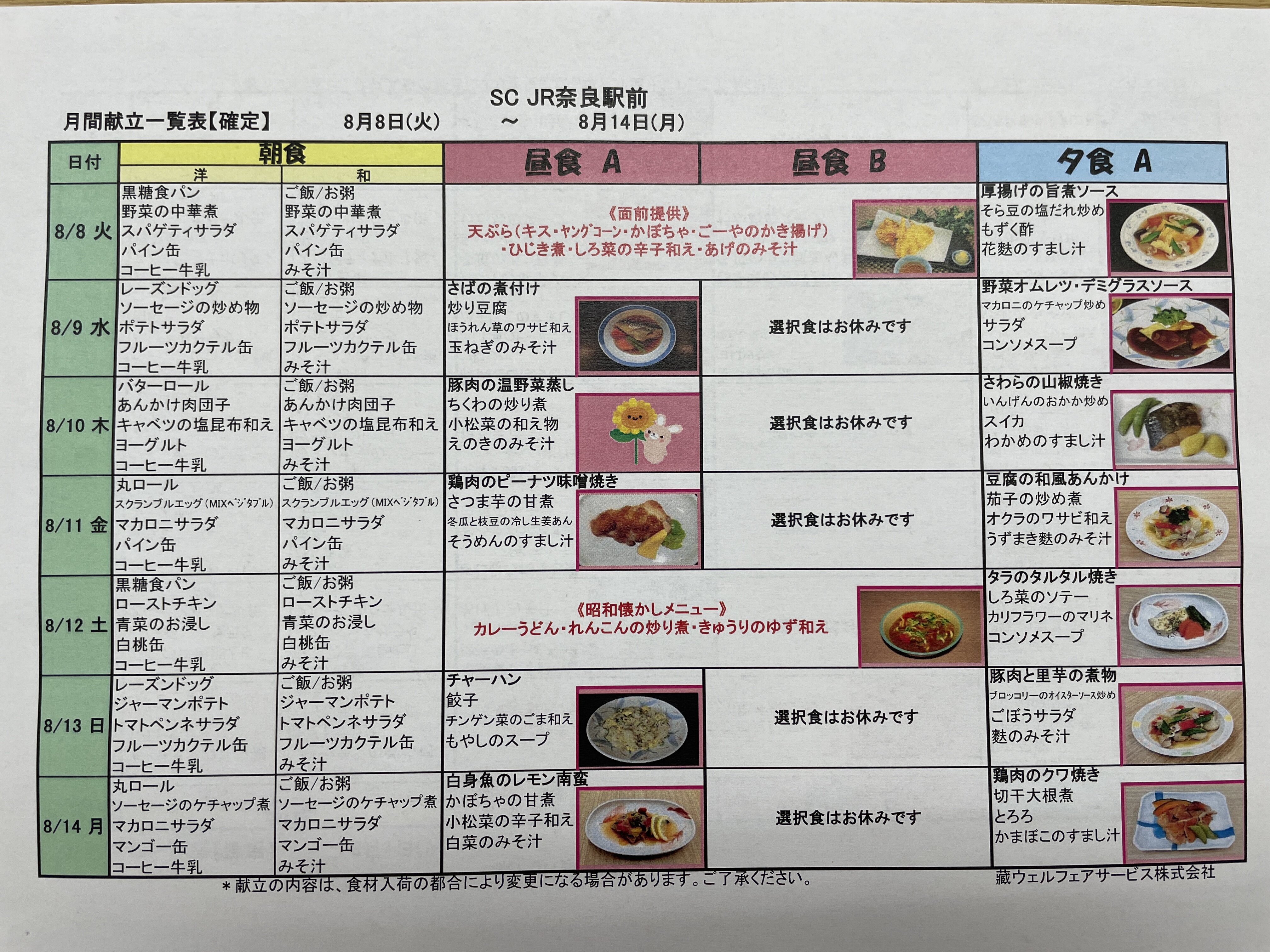 8月の献立について紹介させていただきます。