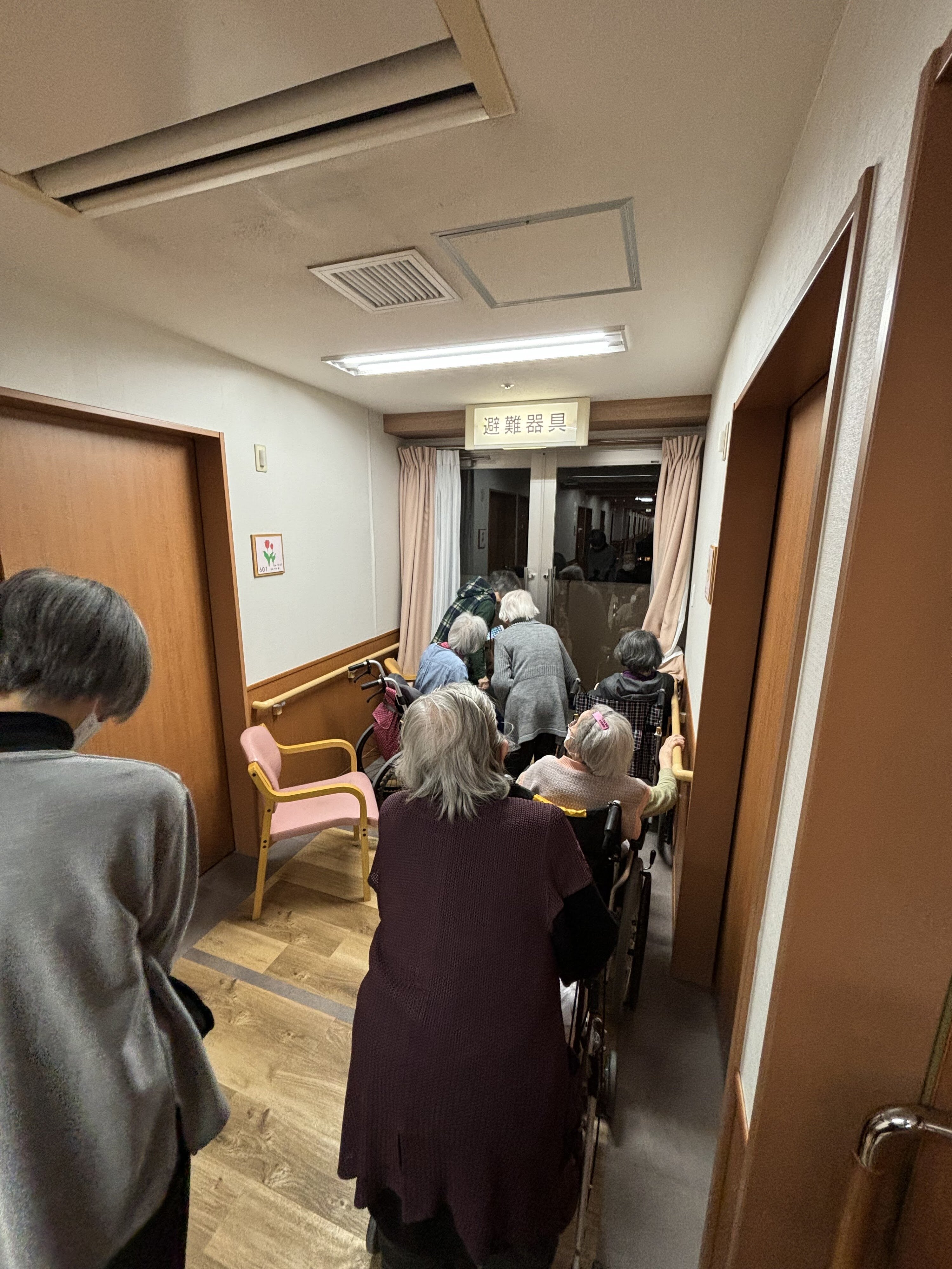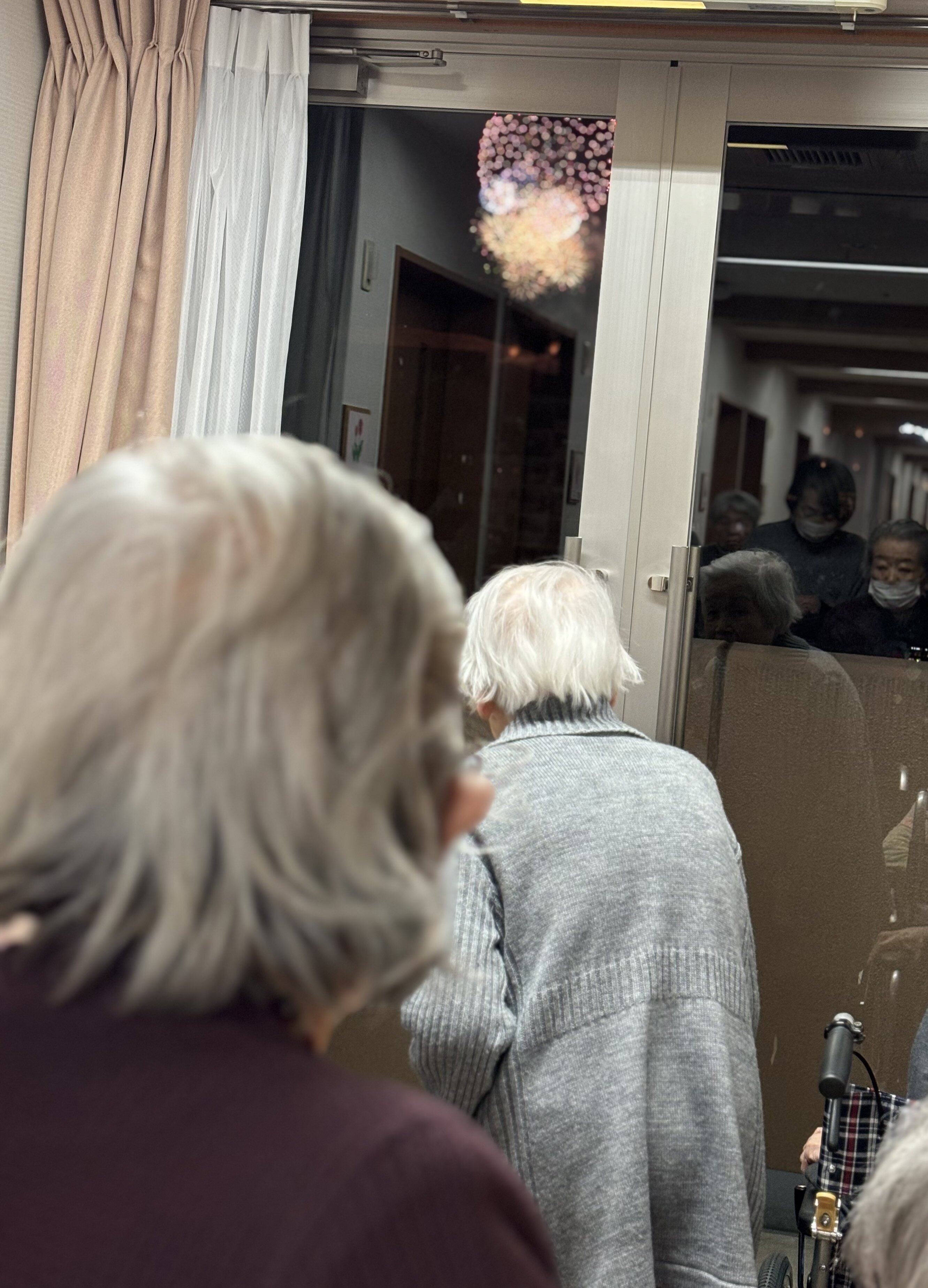 施設から見えるとの事で、夕食後に見える場所に皆さま続々と行かれます。
