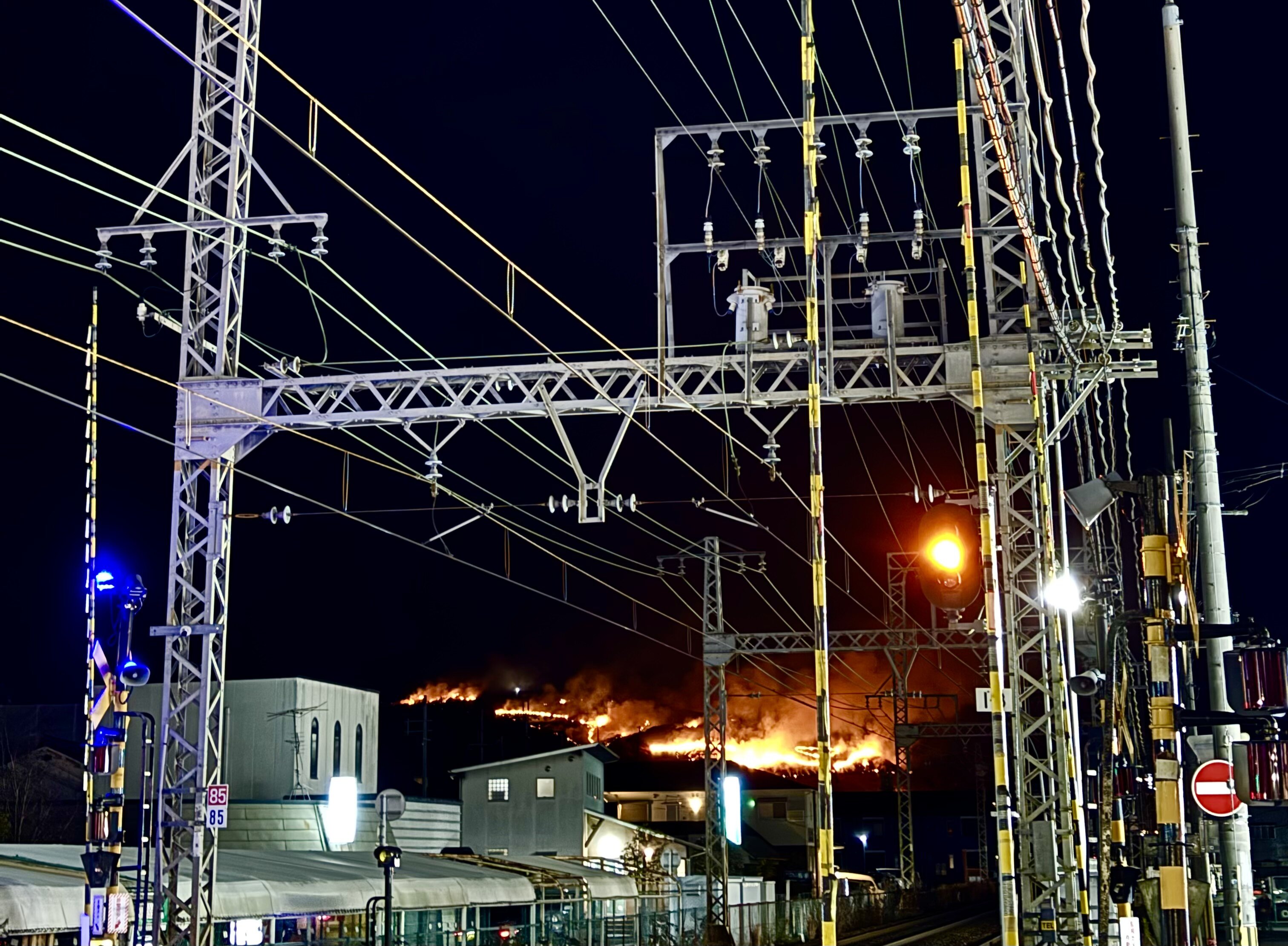 帰りの電車からは山焼きが見れました。