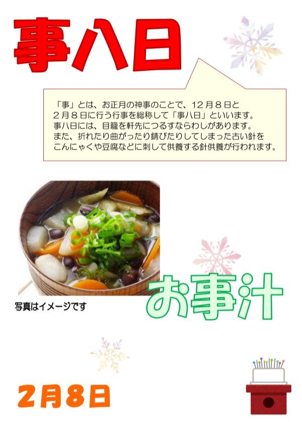 2月8日は『事八日』とよばれ、全国的に様々な行事が行われます。