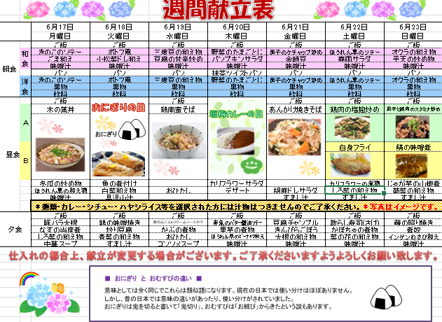 6/17~6/23の献立メニューです。