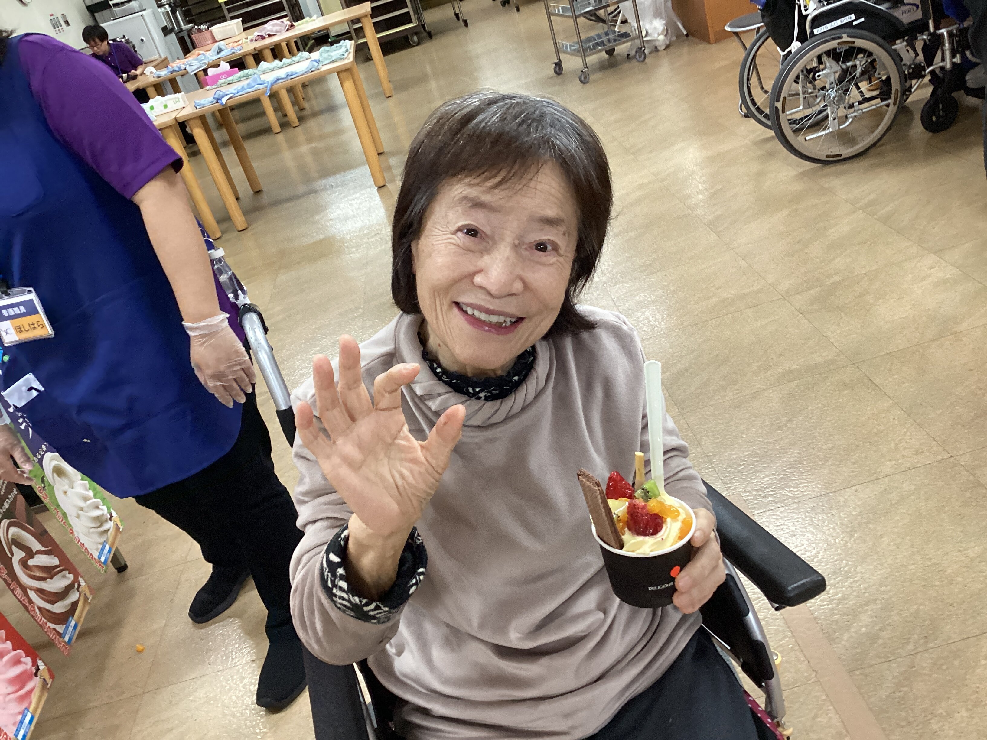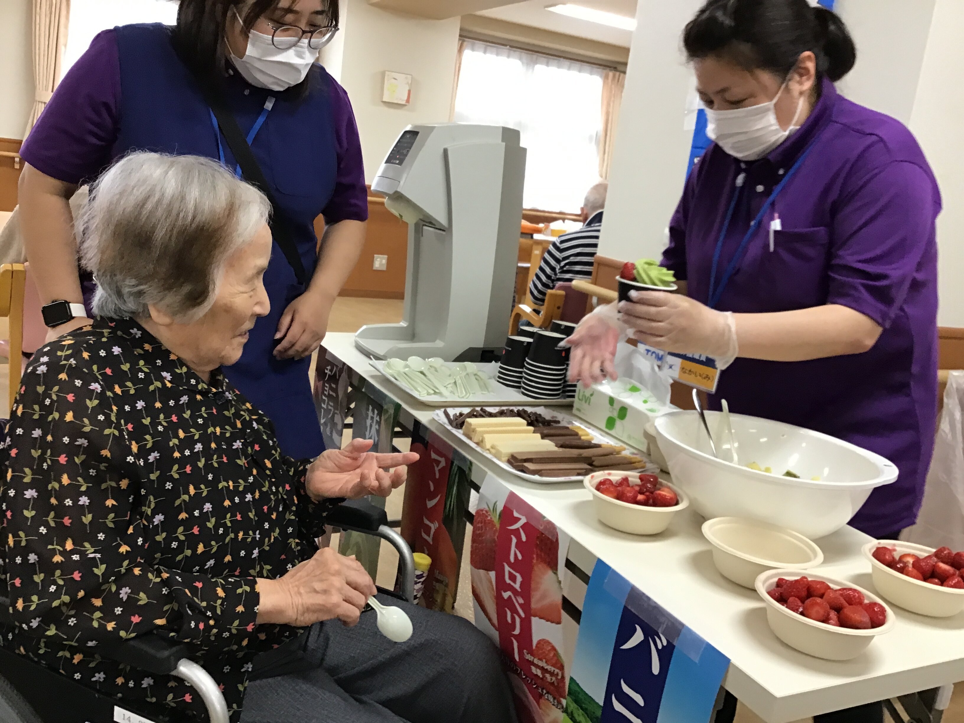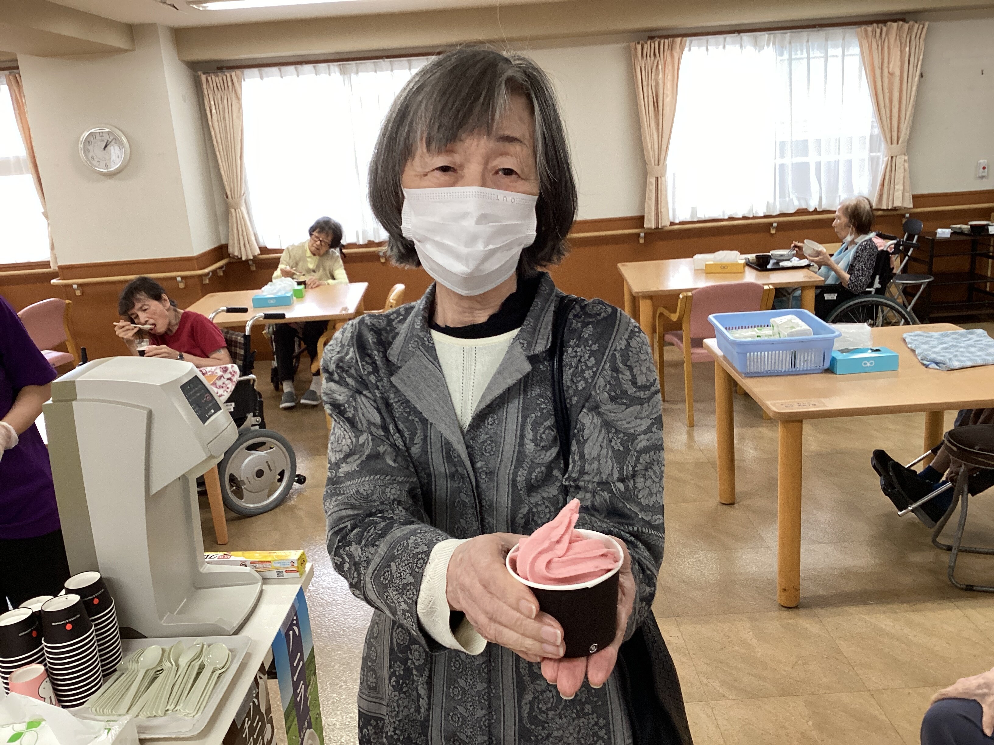 本日、6/9に月祭として、ソフトクリーム作りのレクリエーション行いました。