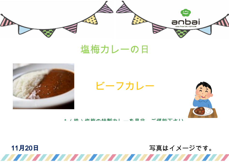 11/20は毎月20日恒例の「塩梅カレー」日です。