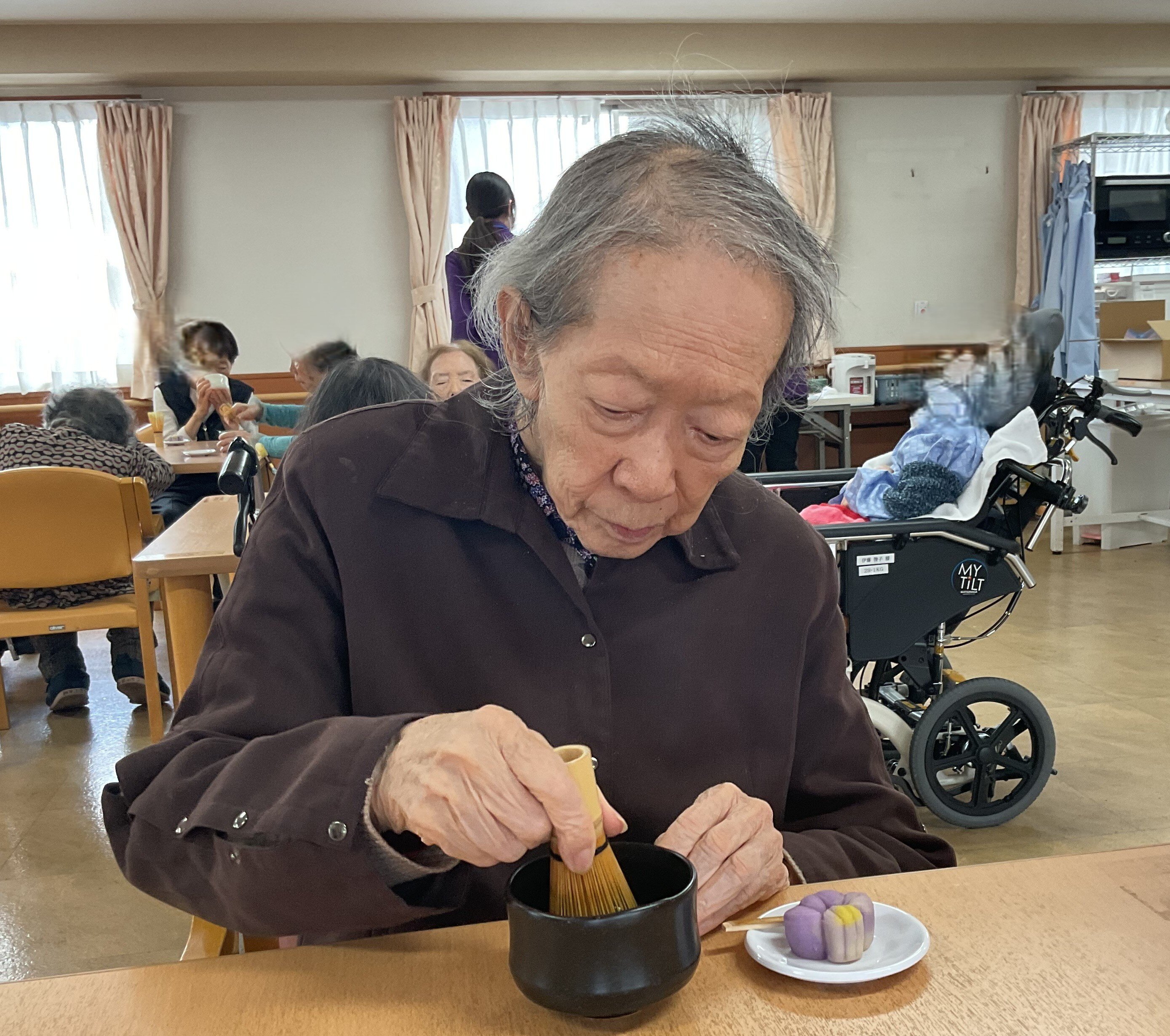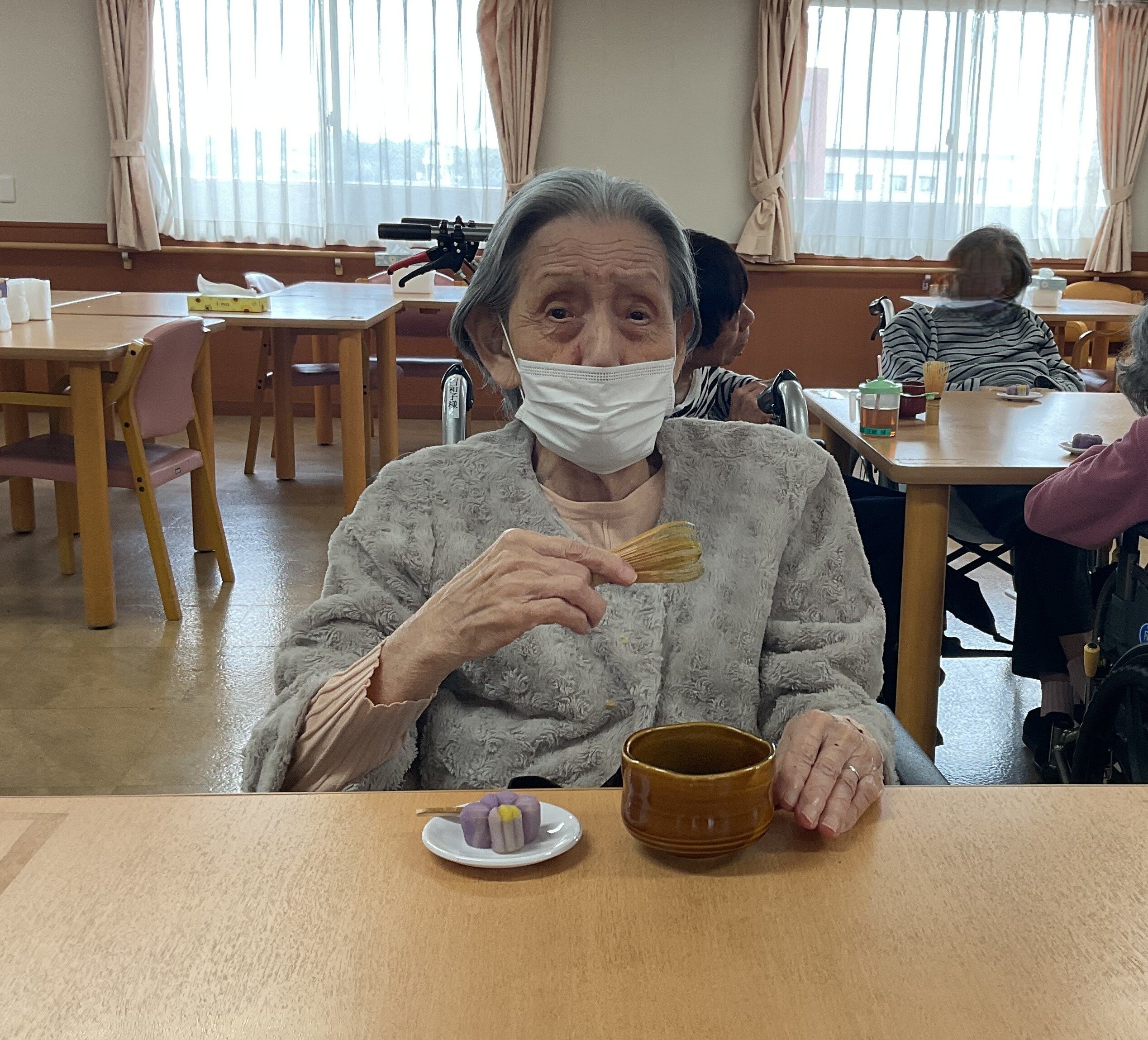 先生に皆様の目の前でお茶を点てていただき、代表して1人のご入居者に召し上がっていただきました。