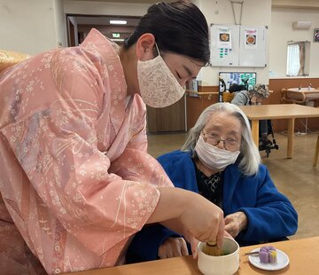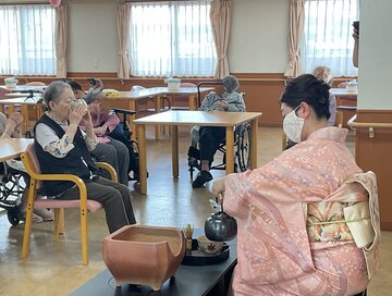 先生が点てたお茶をご入居者を代表して召し上がっていただきました。