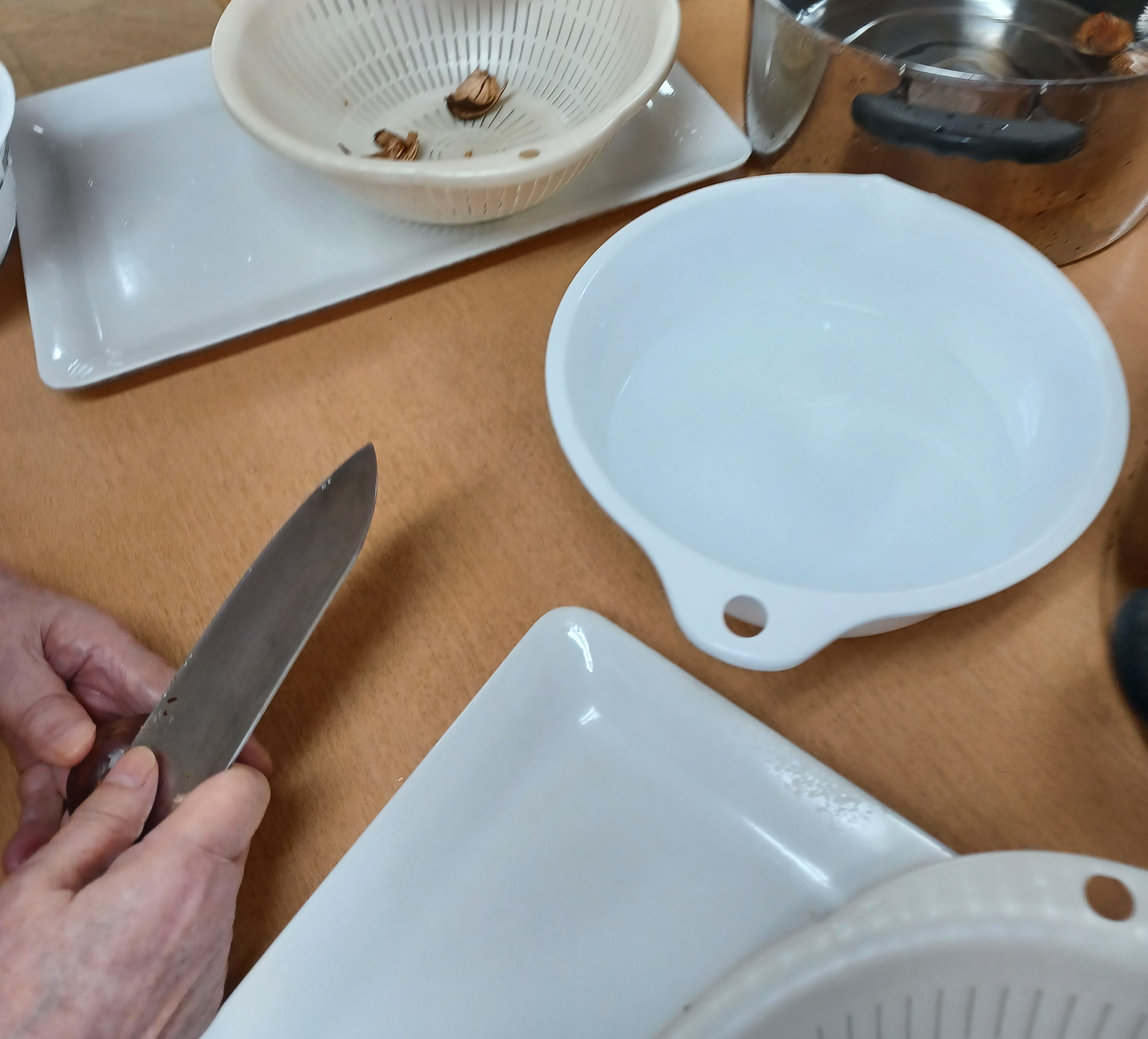重曹を使い、栗のあく抜きとシロップで煮るのは職員の方でさせて頂きました。