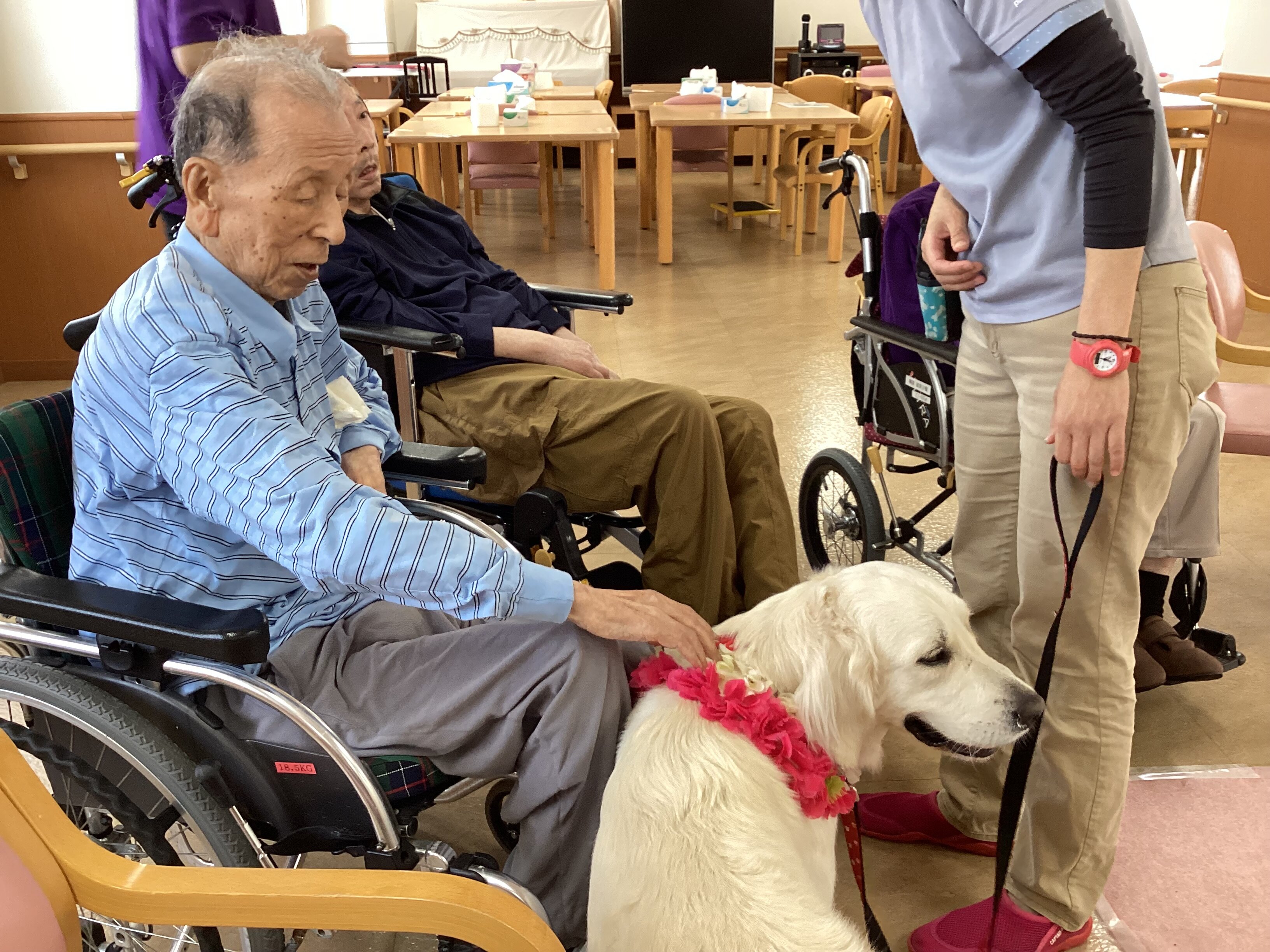 今月は【ドッグセラピー】を施設にお招きいたしました。