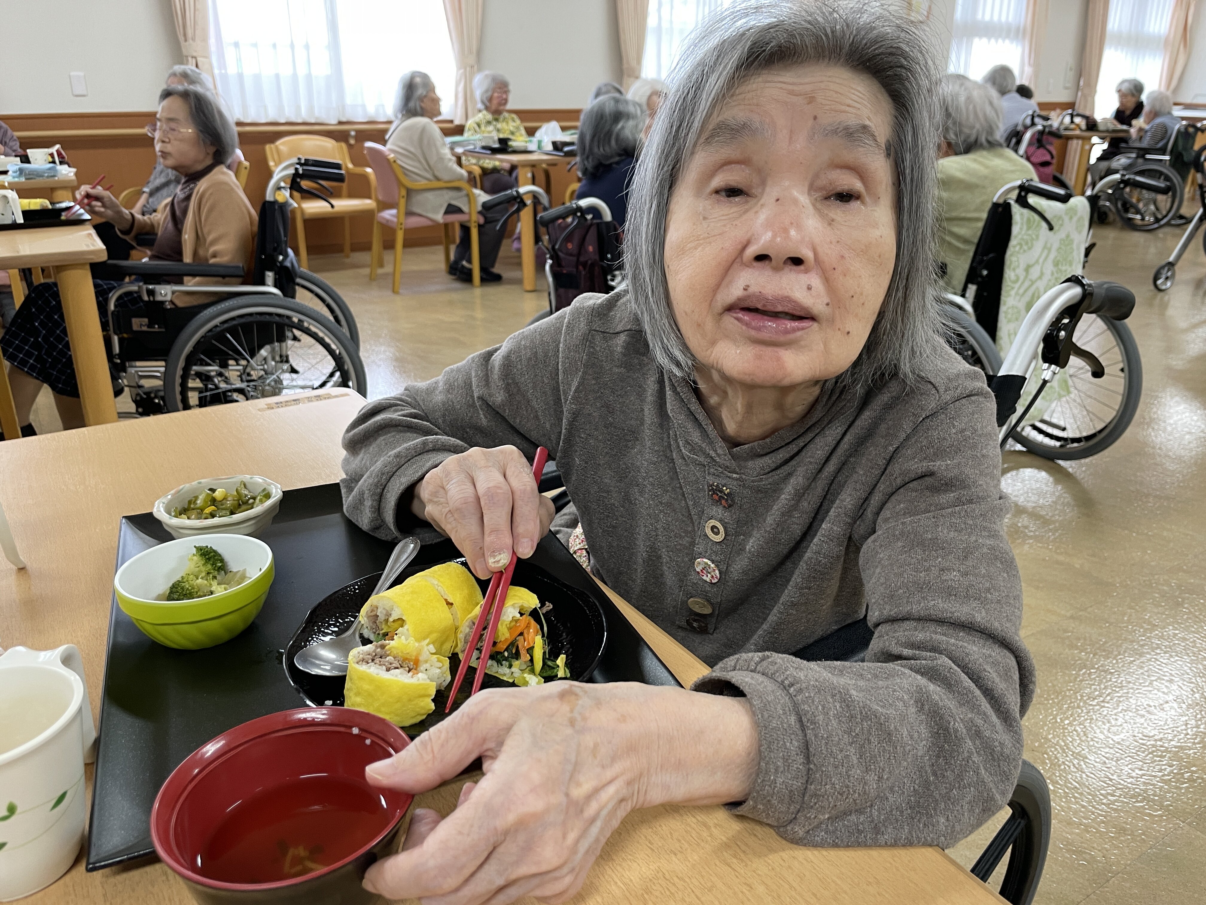 最初、なにが起こるのか怪訝そうな表情をされていた入居者様方でしたが、