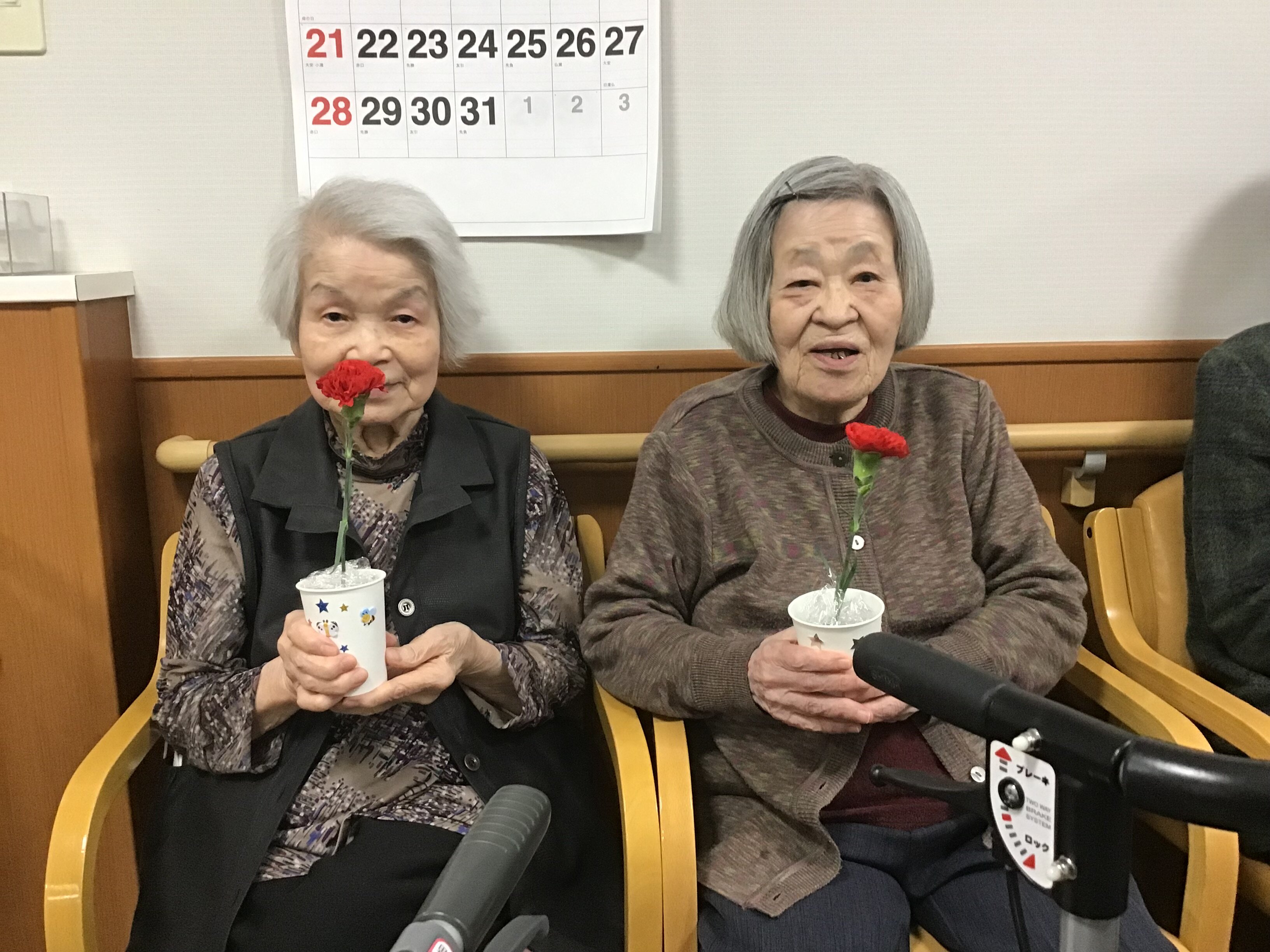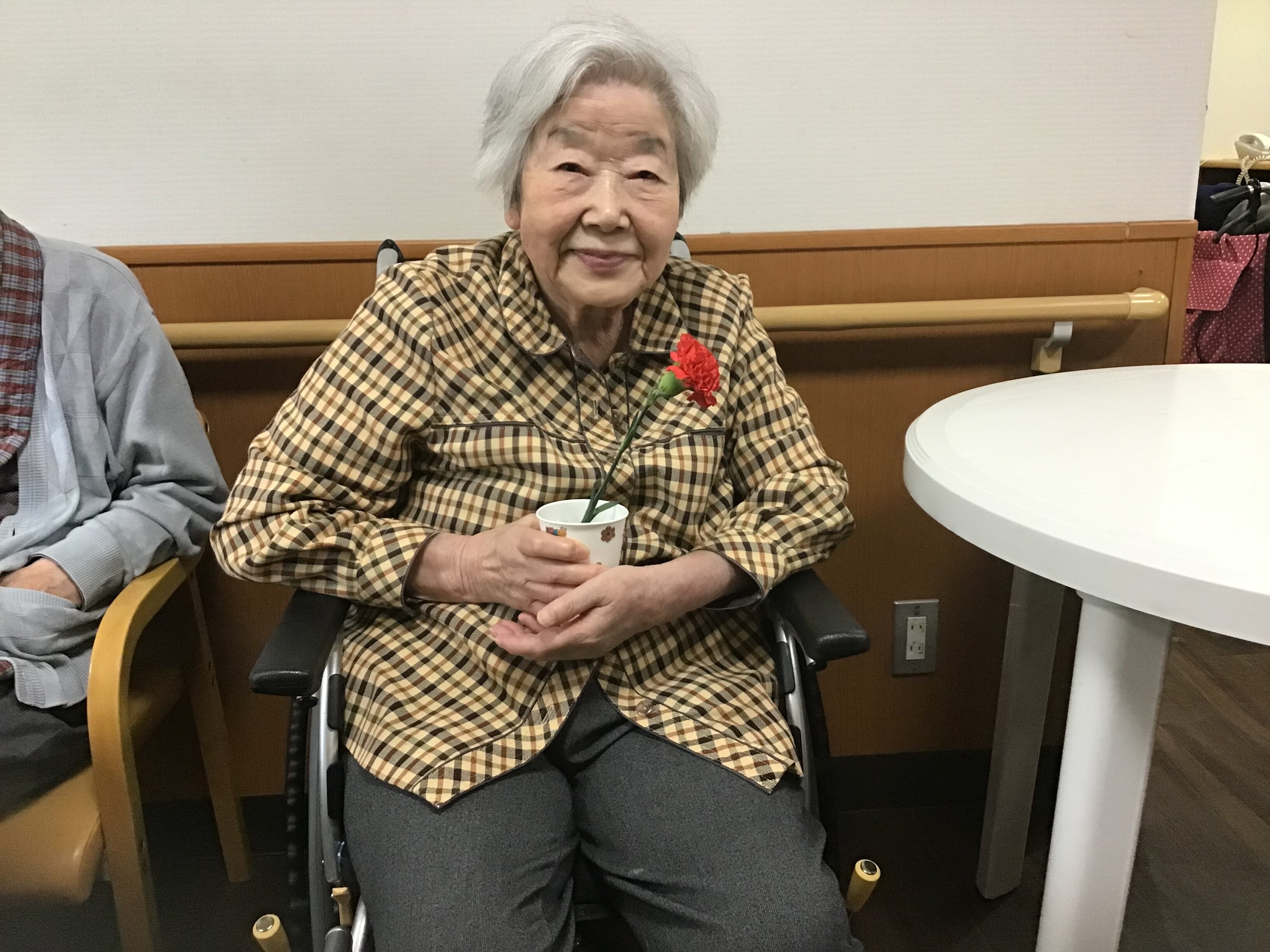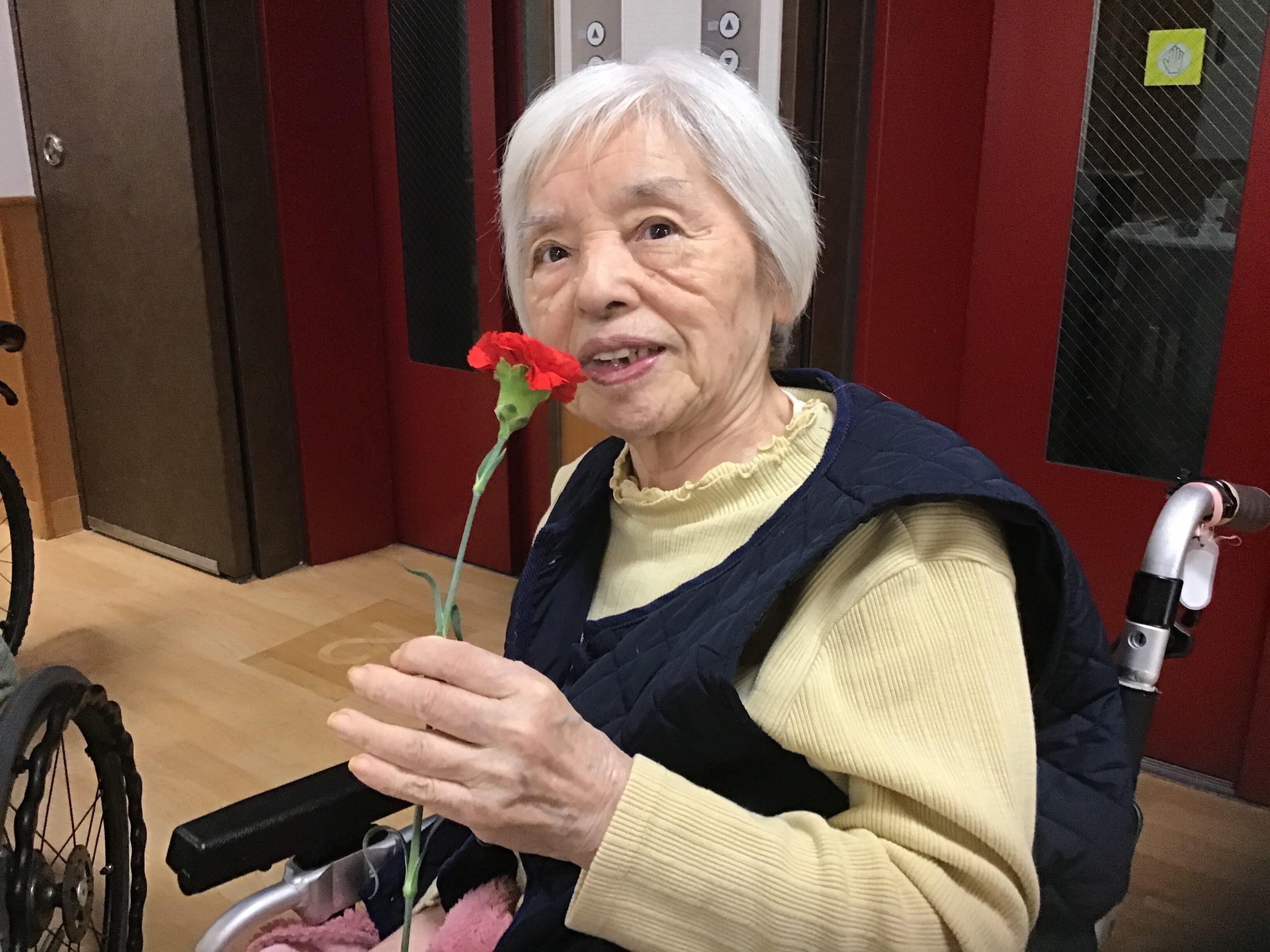 翌日以降、朝の環境時に確認すると、カーネーションのお水交換も毎日を行っておられ、出来ないご入居者もスタッフでお水交換を行い現在もカーネーションはイキイキと咲いています。