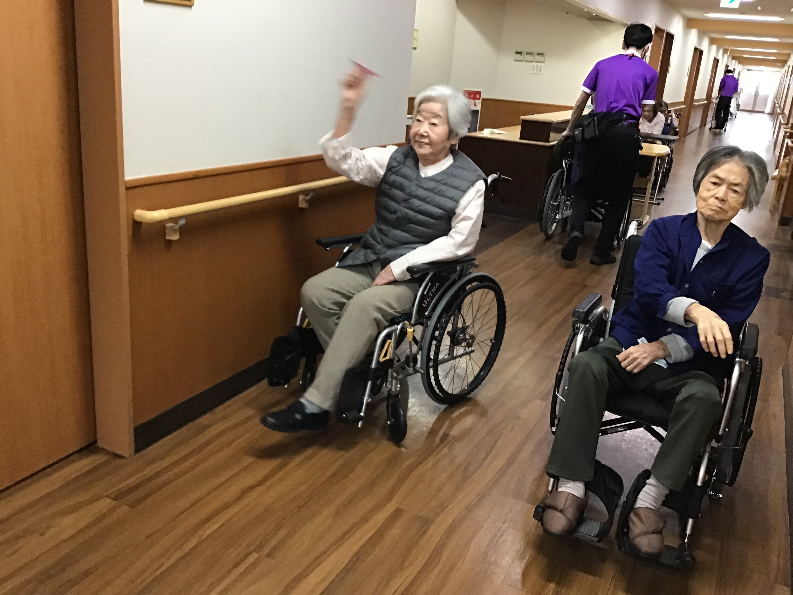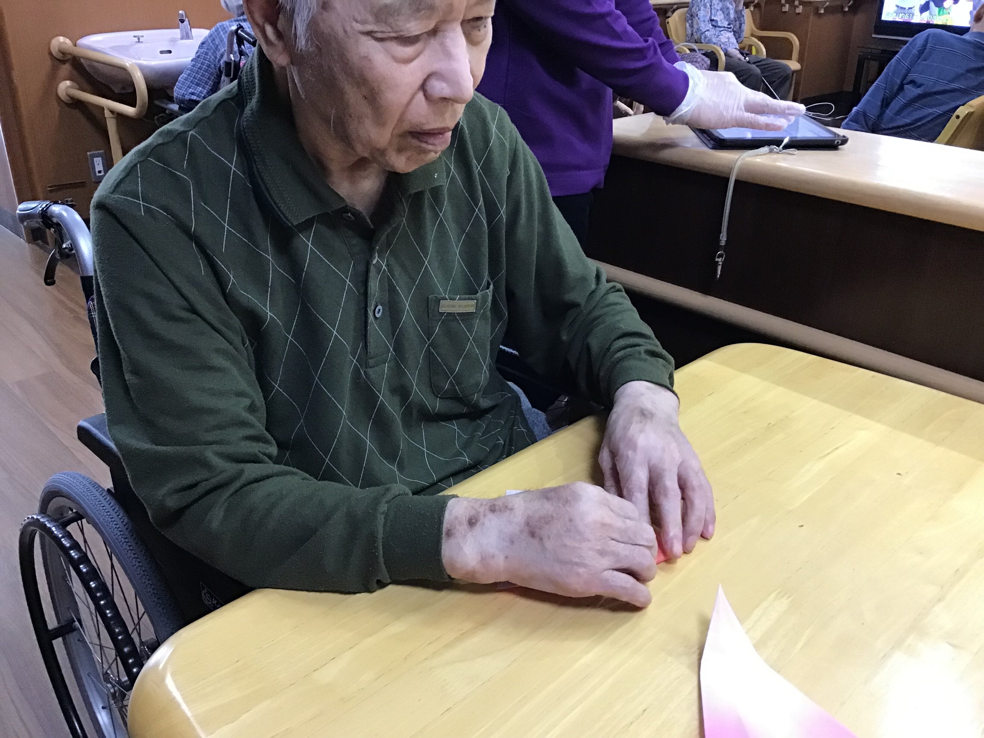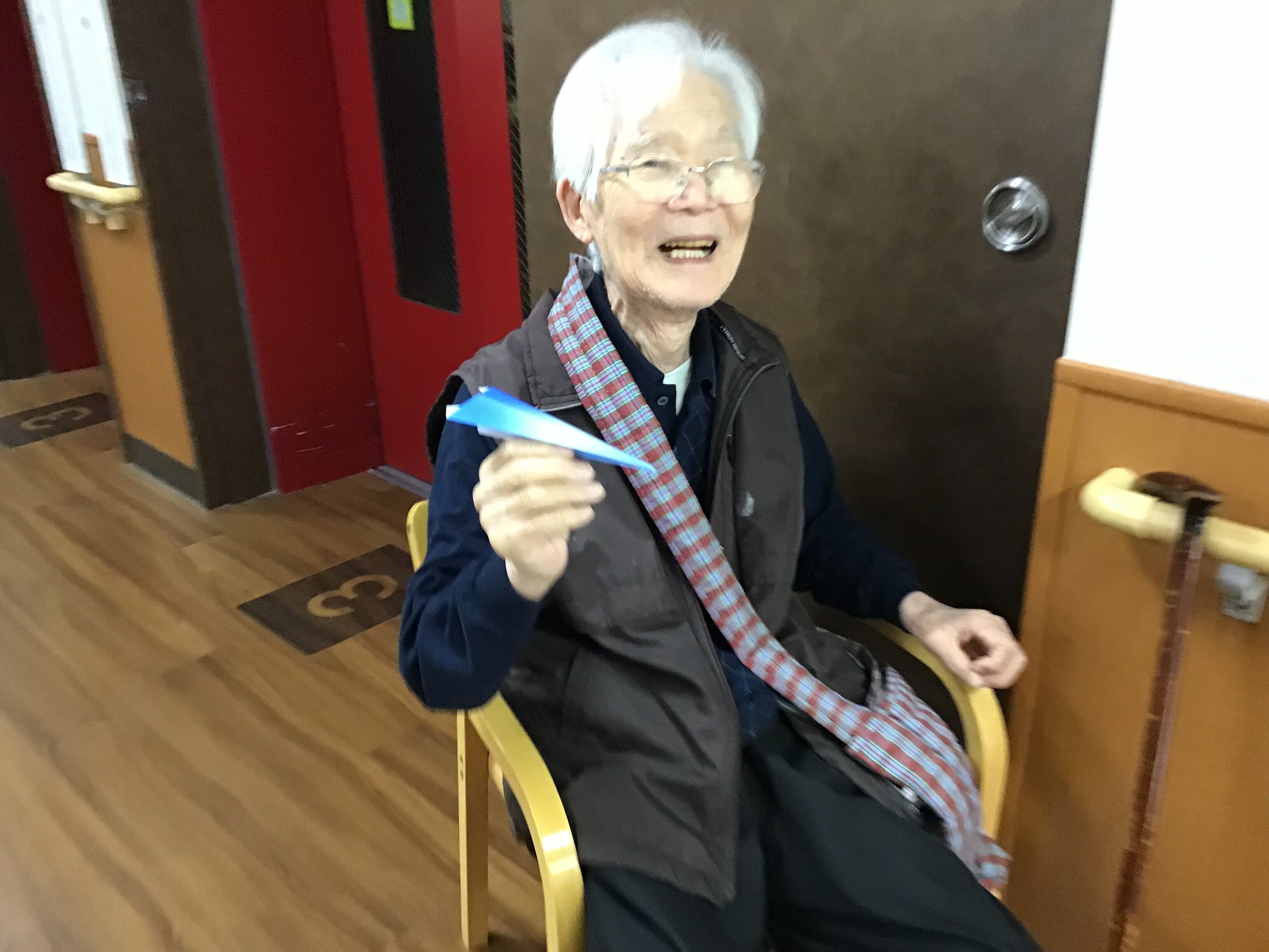 中には思い出したかのように、いかにも遠くまで飛びそうな紙飛行機を折っておられたご入居者もおられました。