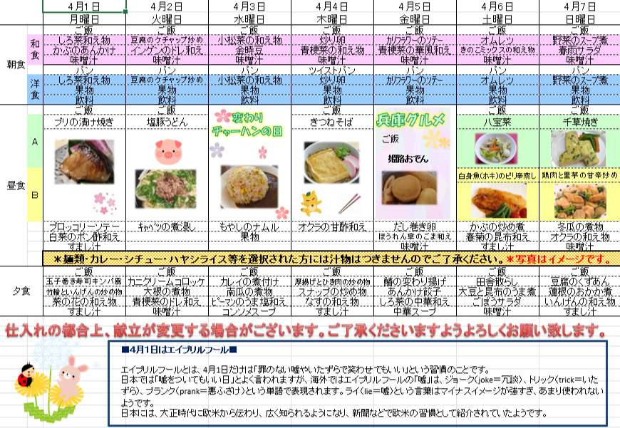また、21日は選択食になっており、ご入居者が事前に選ばれたメニューが提供されます。どちらのメニューも美味しそうですね(≧▽≦)