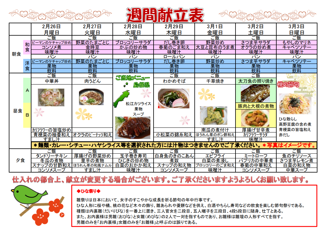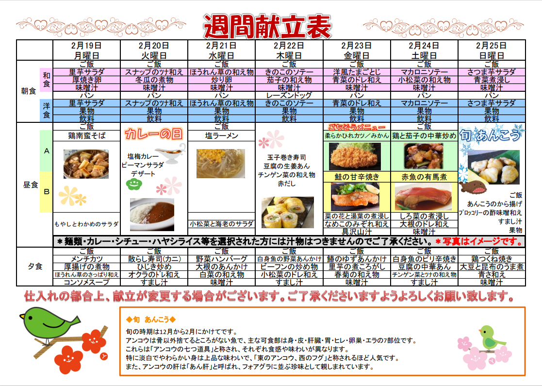 2月の献立表です。