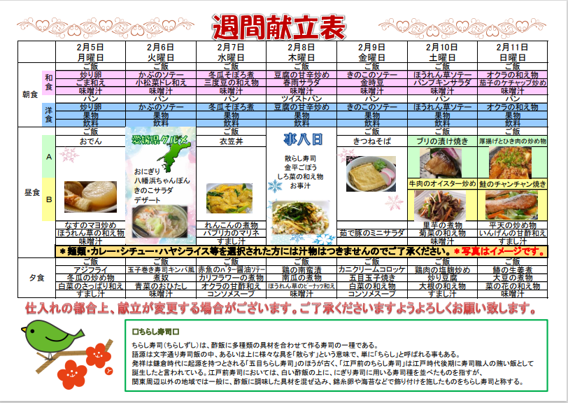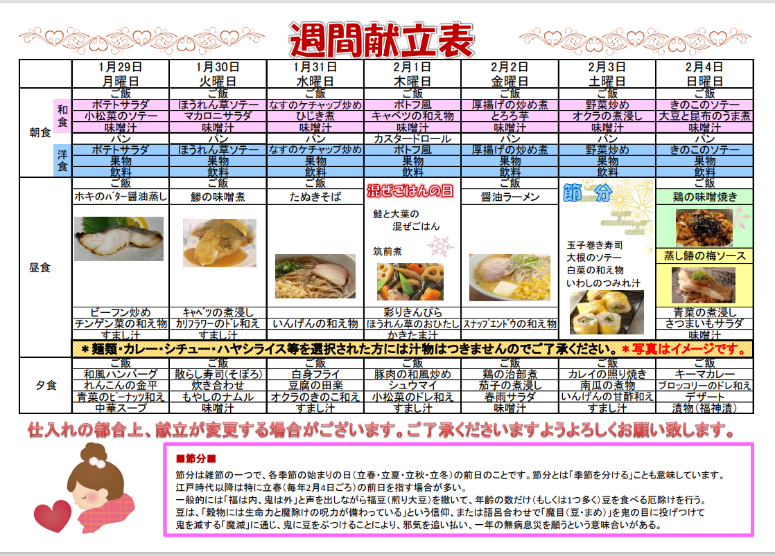 節分メニューは