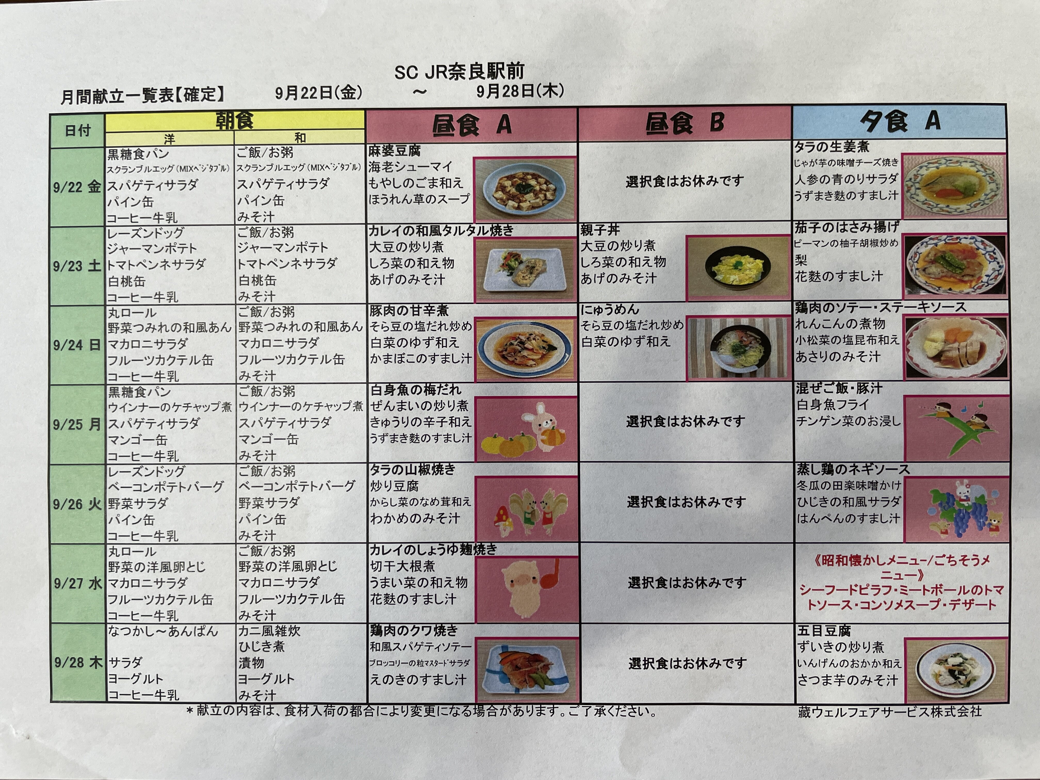 27日の夕食に昭和懐かしメニュー/ごちそうメニューが提供されます。