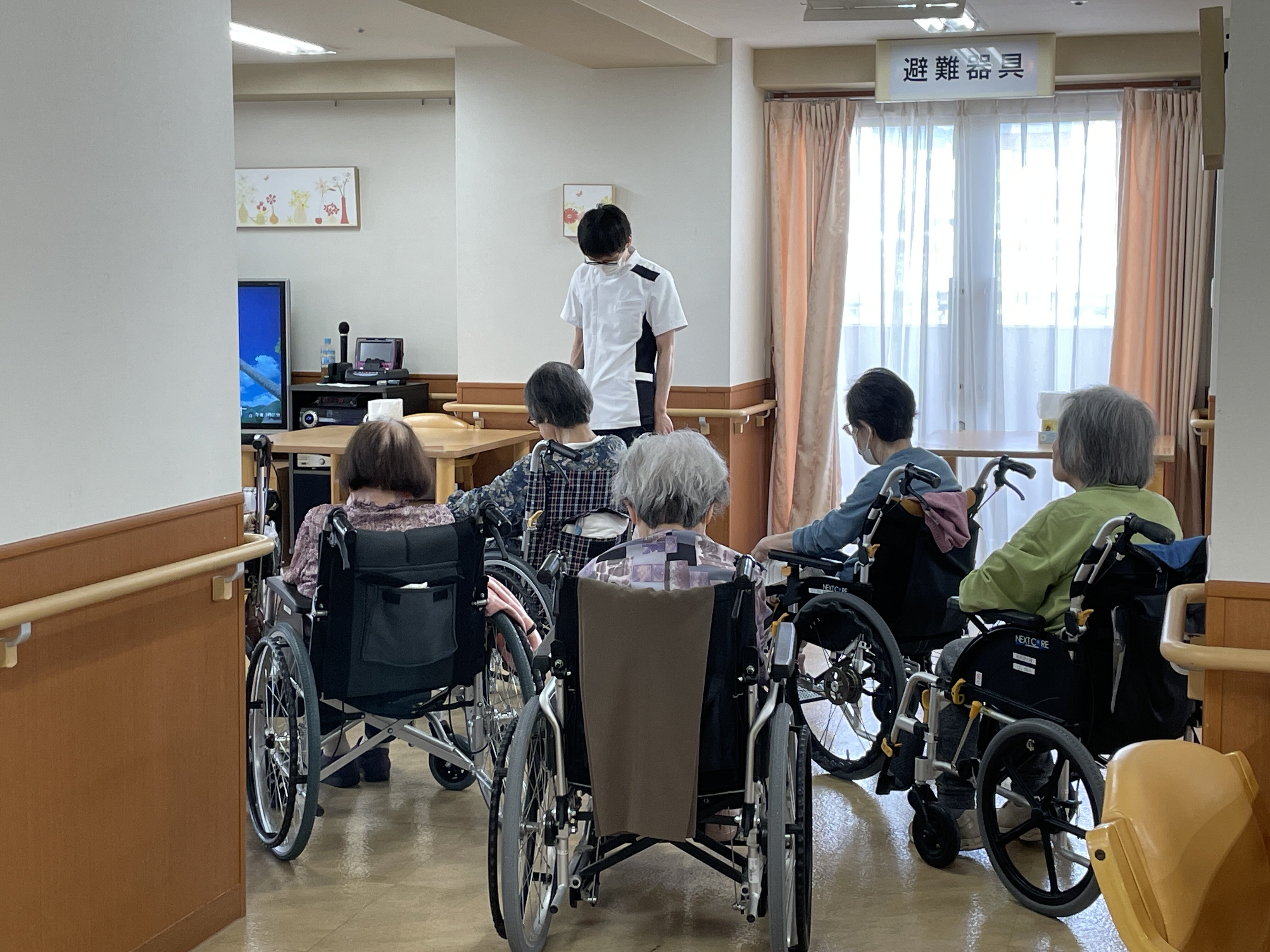 こちらは15時より4階食堂で行われた、4階と6階のご入居者の集団体操の写真です。