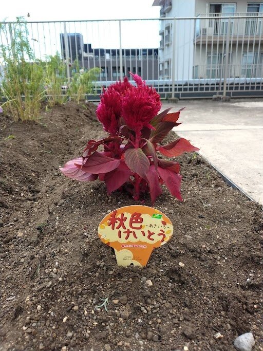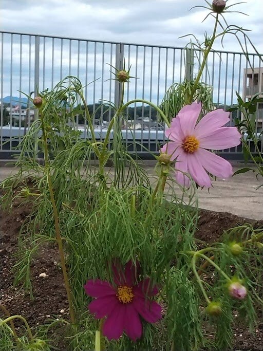 秋になったら屋上レクリエーションを行ないます。ご入居者に見て楽しんでいただこうと秋の花「コスモス」をたくさん植えました。