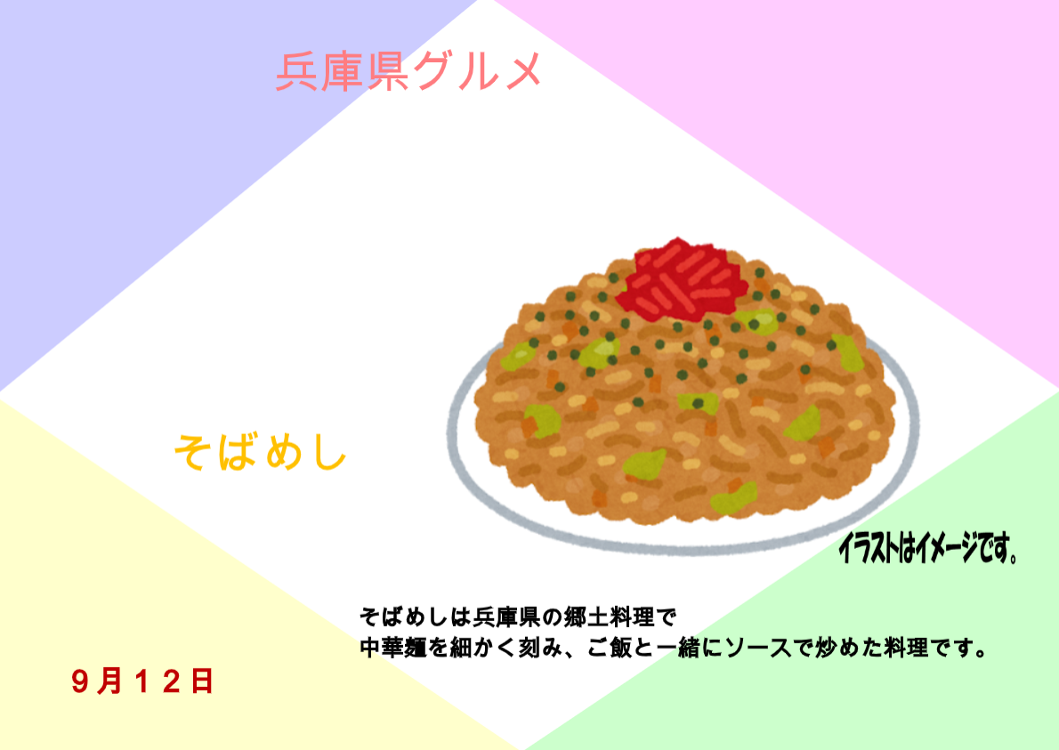 9/12の昼食には、兵庫県グルメの「そばめし」が提供されます。