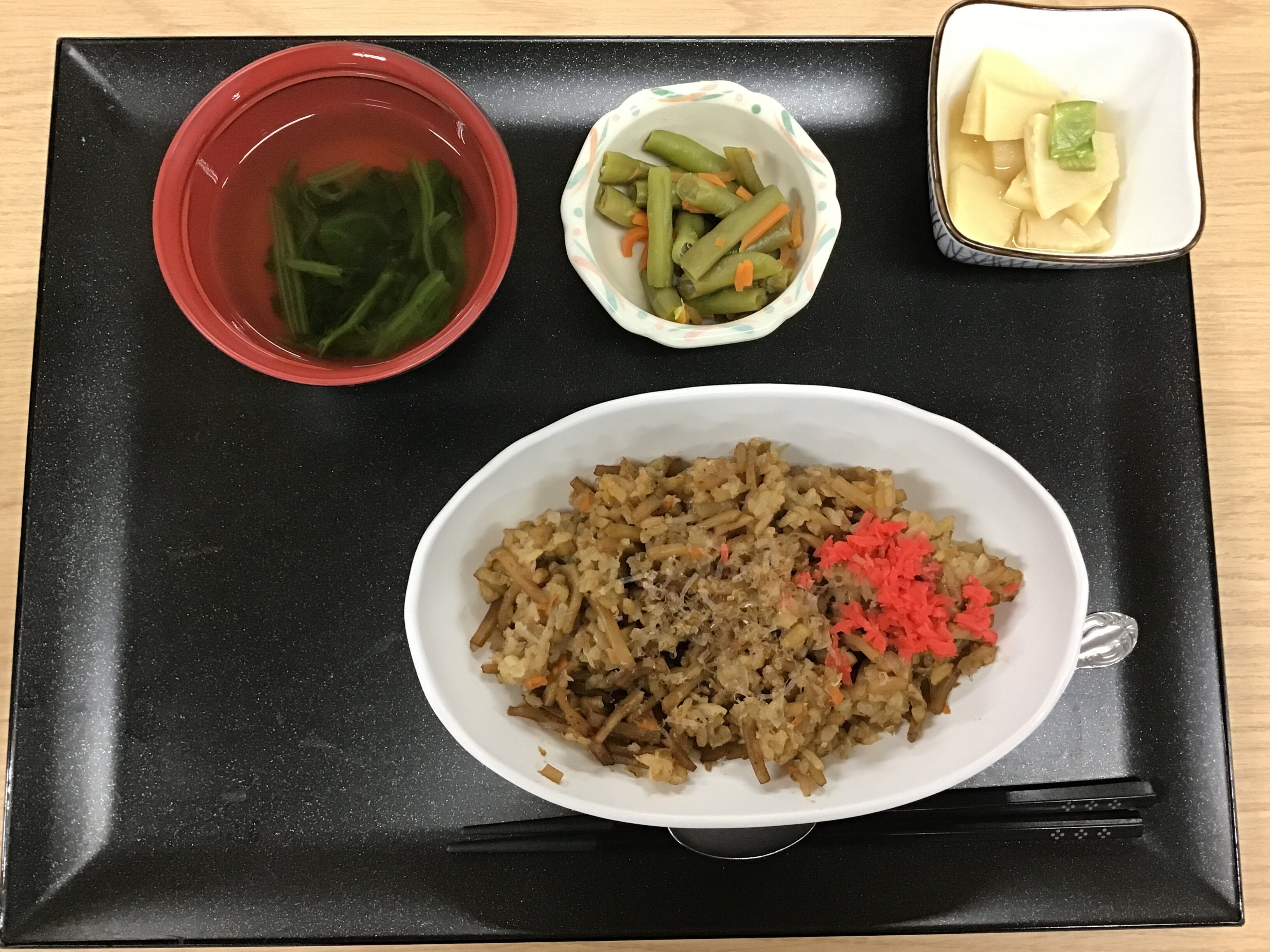 ・そばめし ・たけのこの土佐煮 ・いんげんの和え物 ・すまし汁