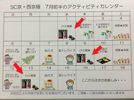 そして西京極に入居して良かったと思っていただけるよう毎回1つは『新ネタ・アクティビティ(橙矢印)』をご用意しながら