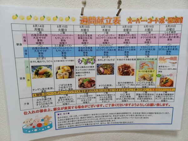 本日はスーパー・コート京・西京極の昼食を紹介いたします。