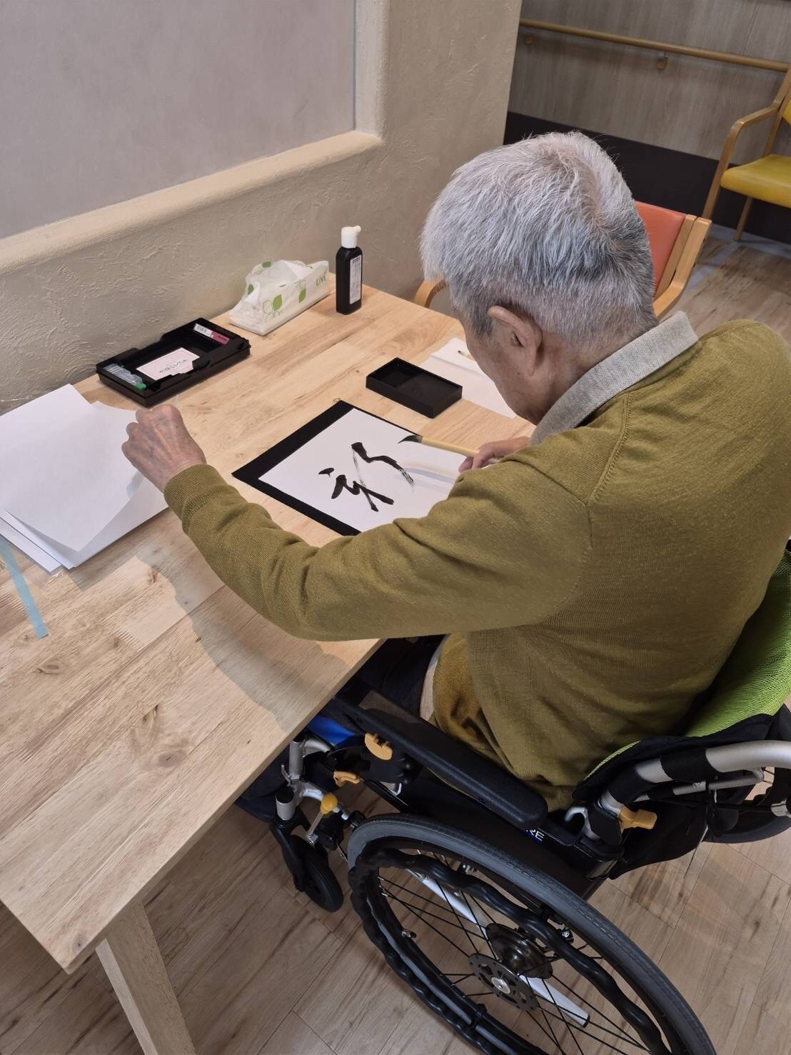 施設では書初めを行っておりました。
