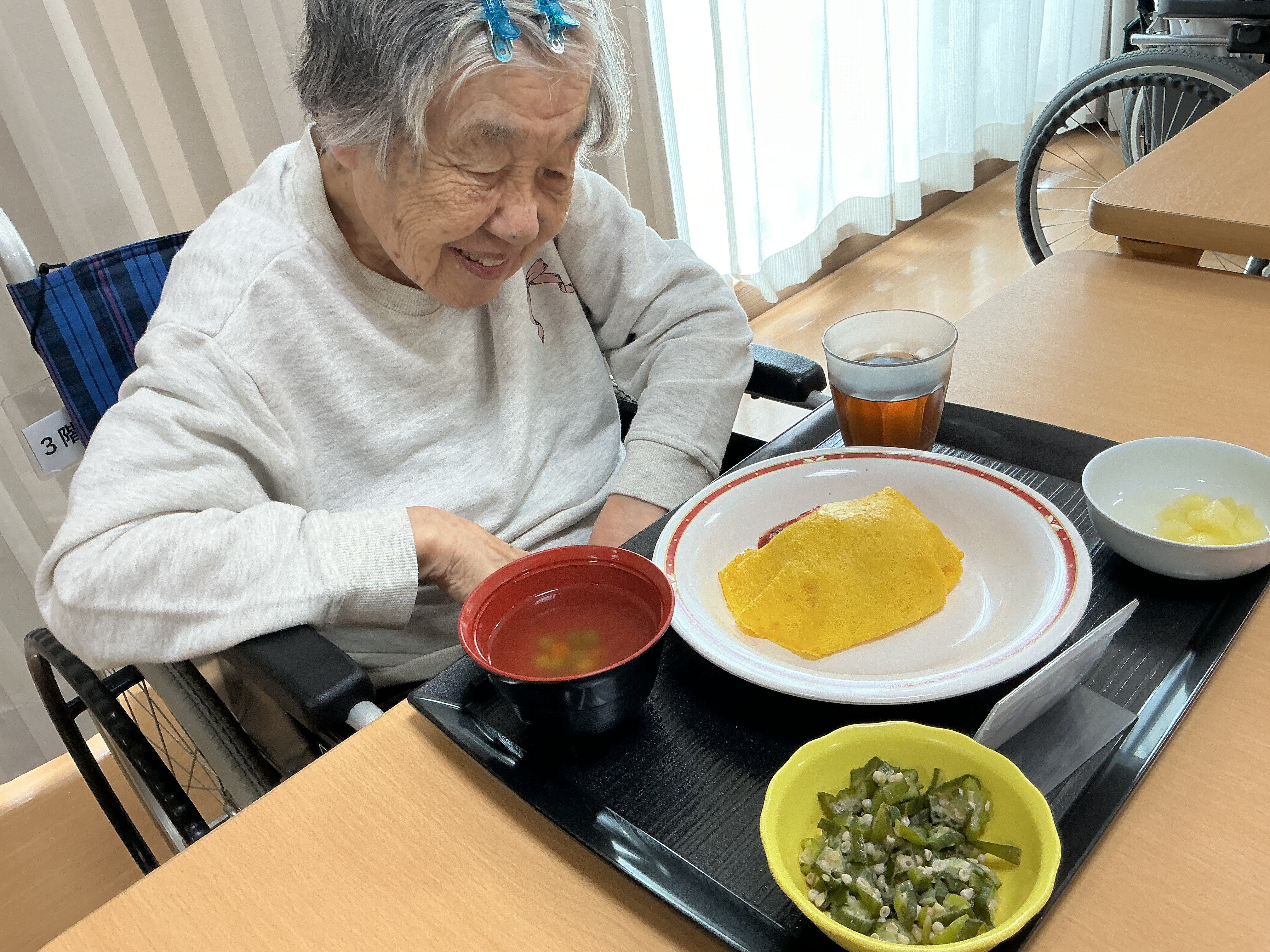 先日ご紹介したご入居者の皆様のお食事ですが、実際に召し上がっているところをご紹介します。