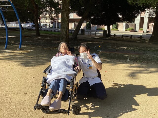 とても仲が良く一緒にテレビを見ておられたり、歌を歌われたり、いつも楽しそうに過ごされています。