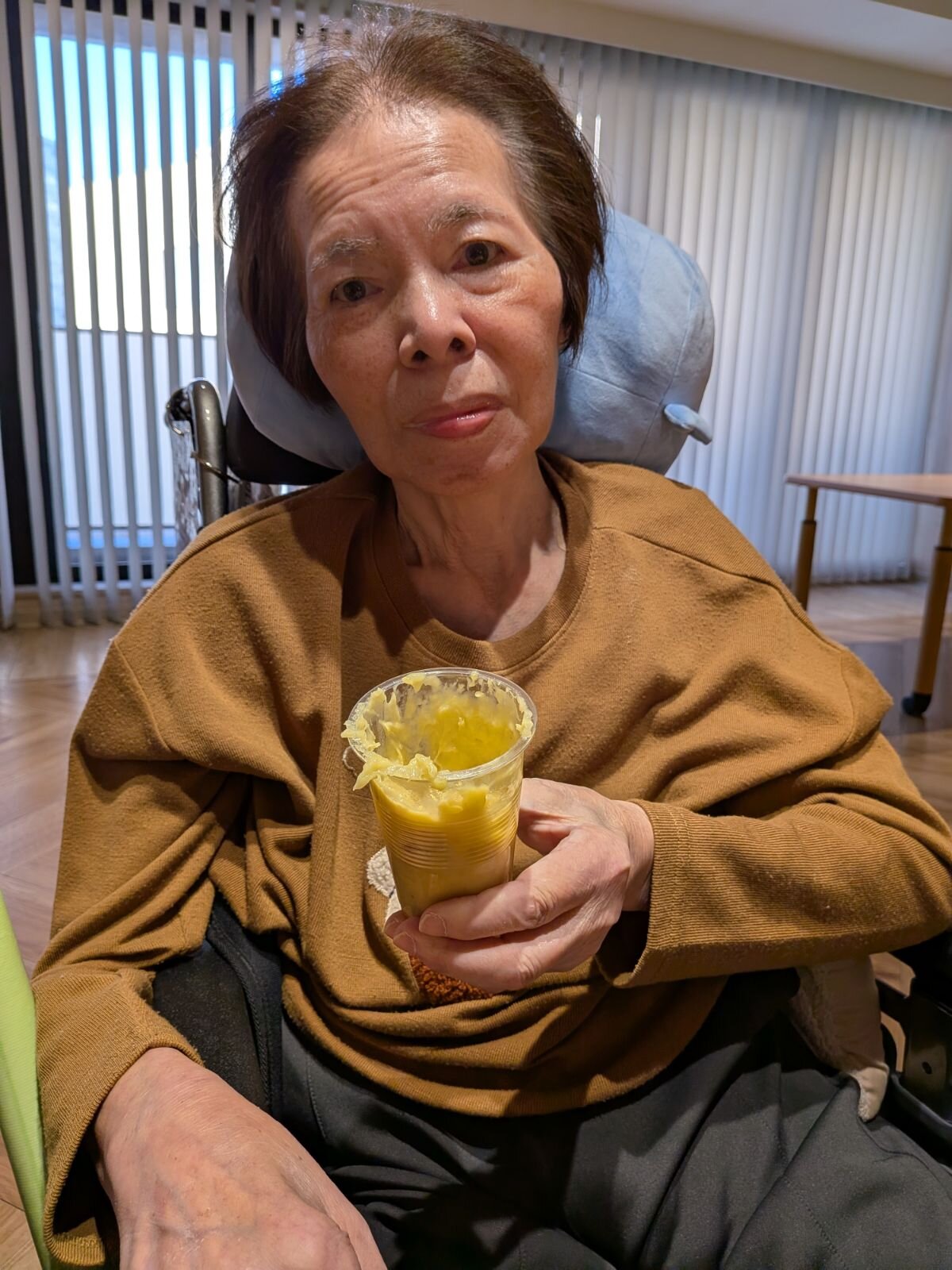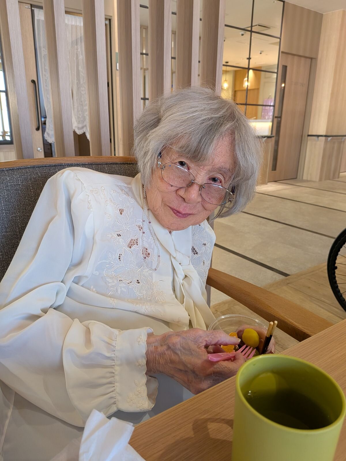 ご入居者様それぞれの嚥下状態に合わせて、固形物が難しい方はお芋を滑らかにしたスイートポテト風にして召し上がっていただきました♪