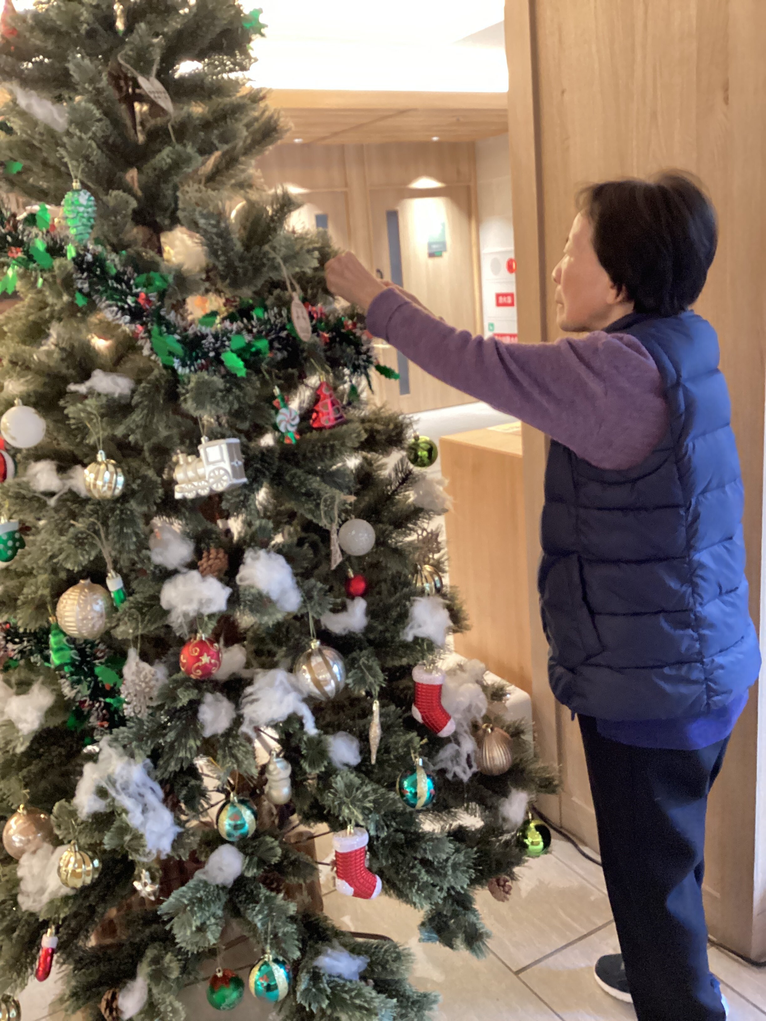 先月のクリスマスツリーの飾りつけの様子を掲載させていただきます♩