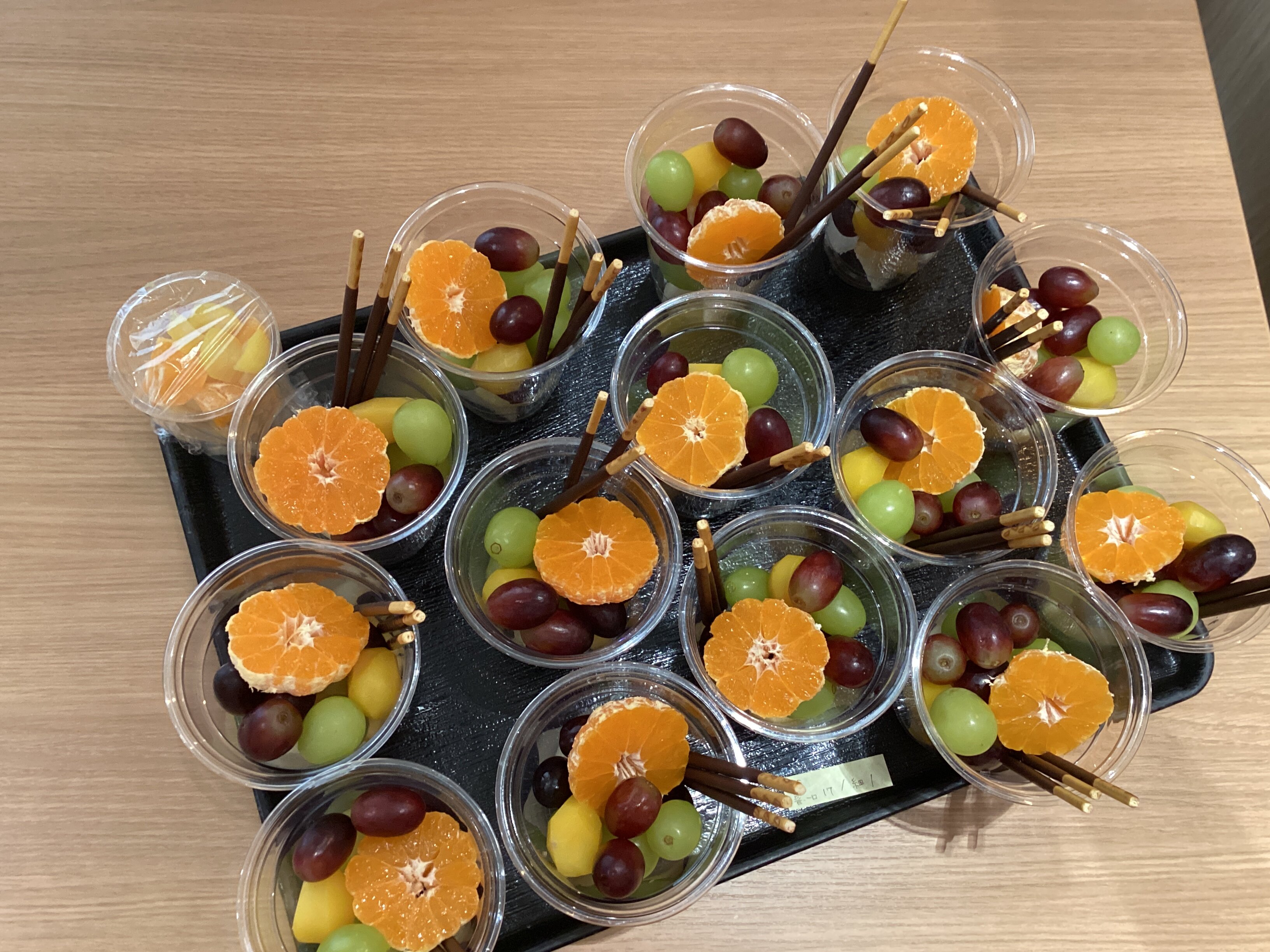 りんご、みかん、ぶどう、マスカット、栗など・・様々なフルーツをカップいっぱいに盛り付けて召し上がっていただきました♪