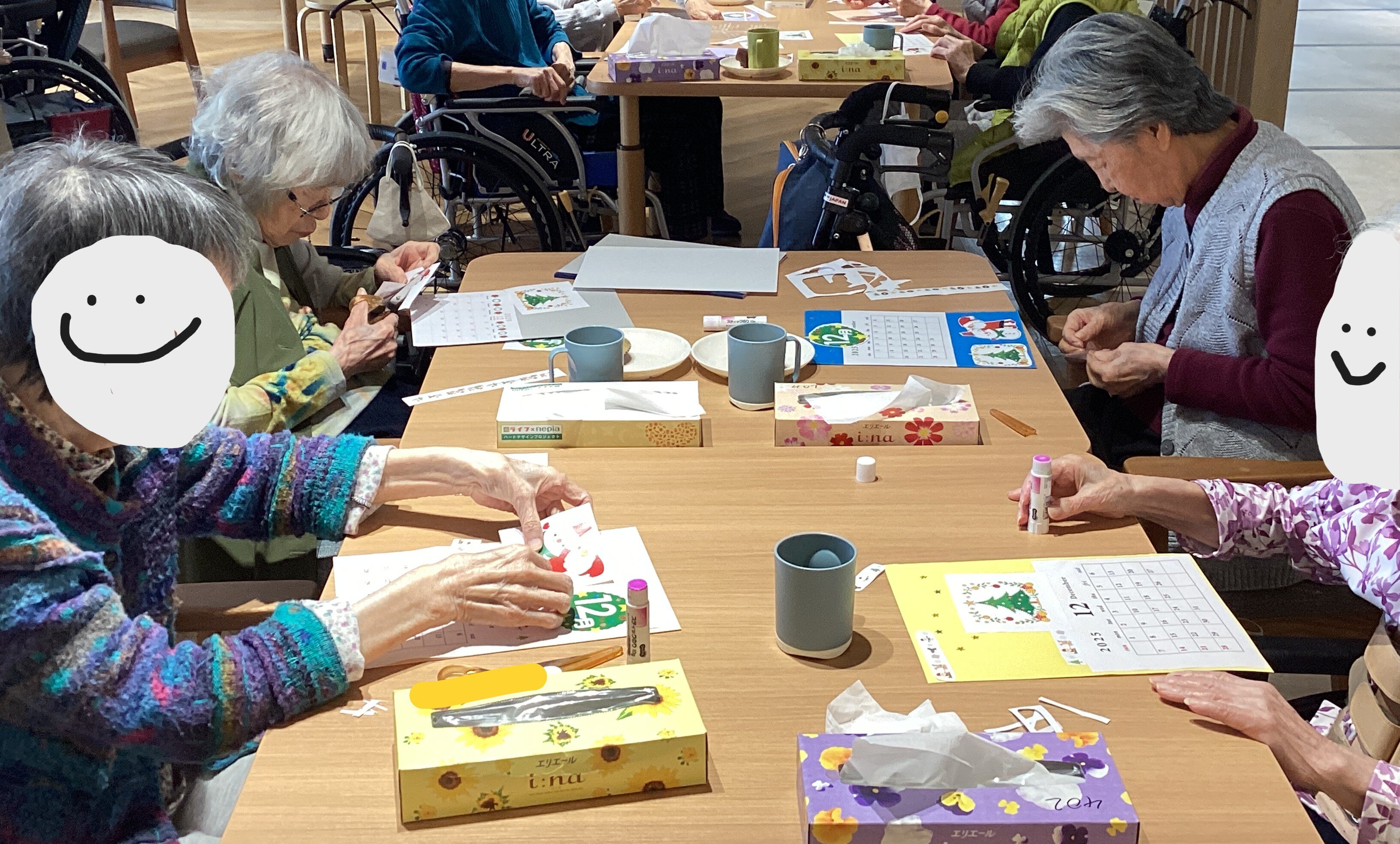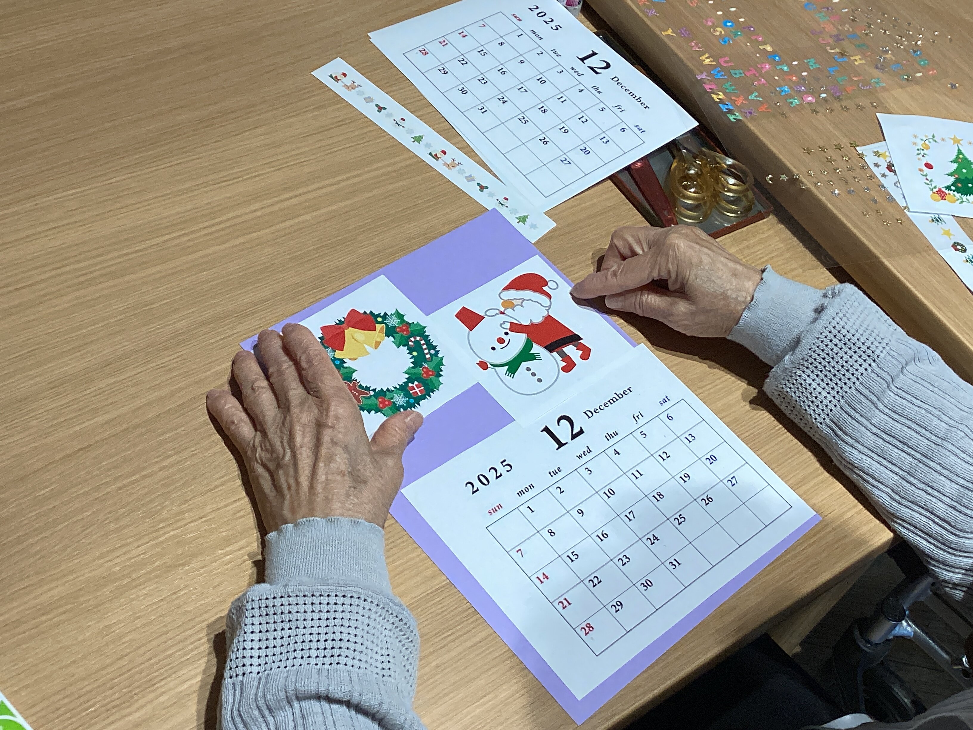 先日、レクリエーションで12月のカレンダー作りをしました♩