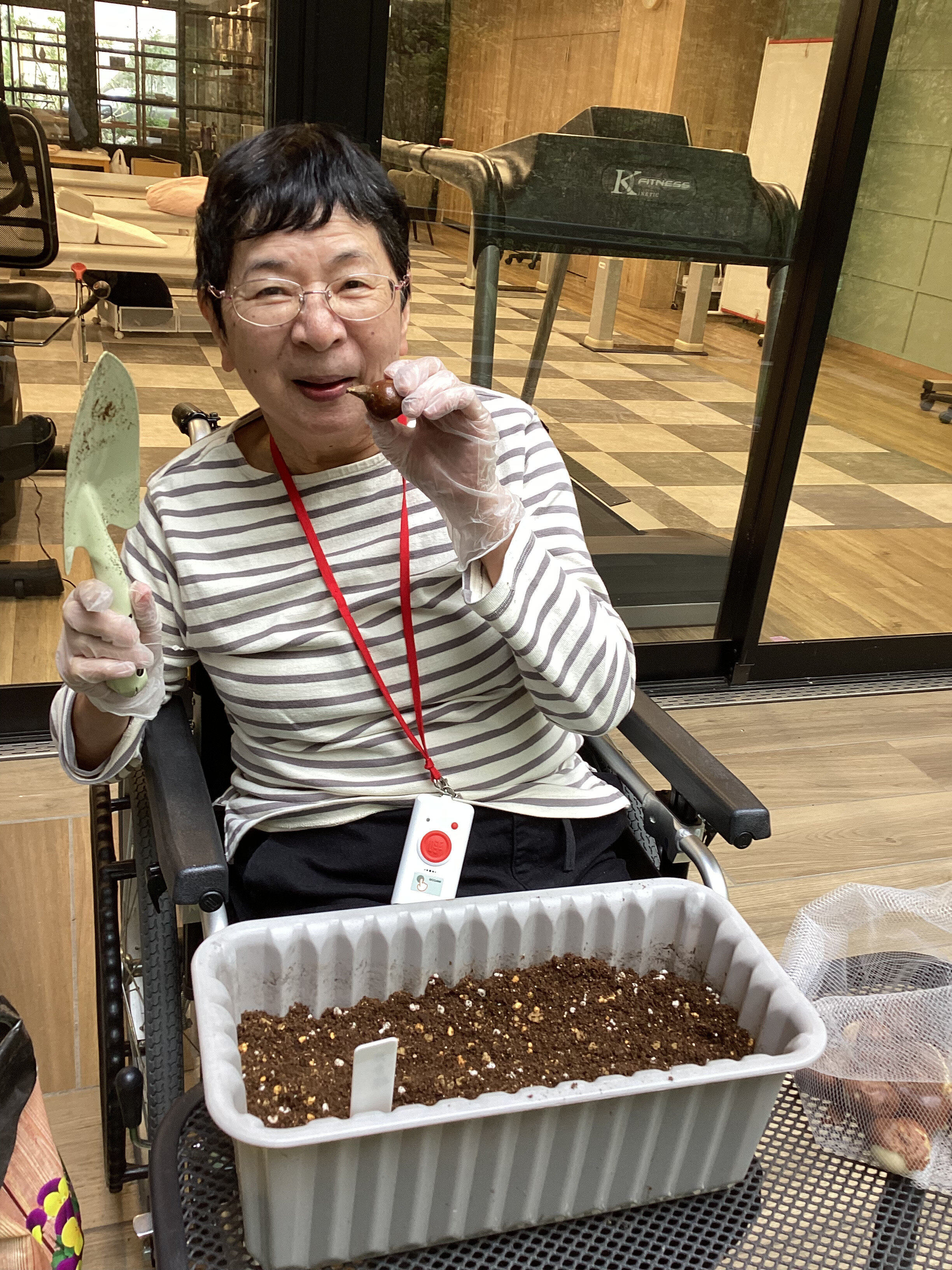 寒さが感じられる今日この頃ですが、晴れた日に暖かい恰好をしていただきガーデンスペースにてガーデンリハビリを実施いたしました!