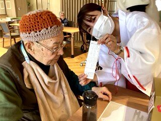 2023年12月、1番入りのご入居者様と朝のラジオ体操しました(≧∇≦)ノ
