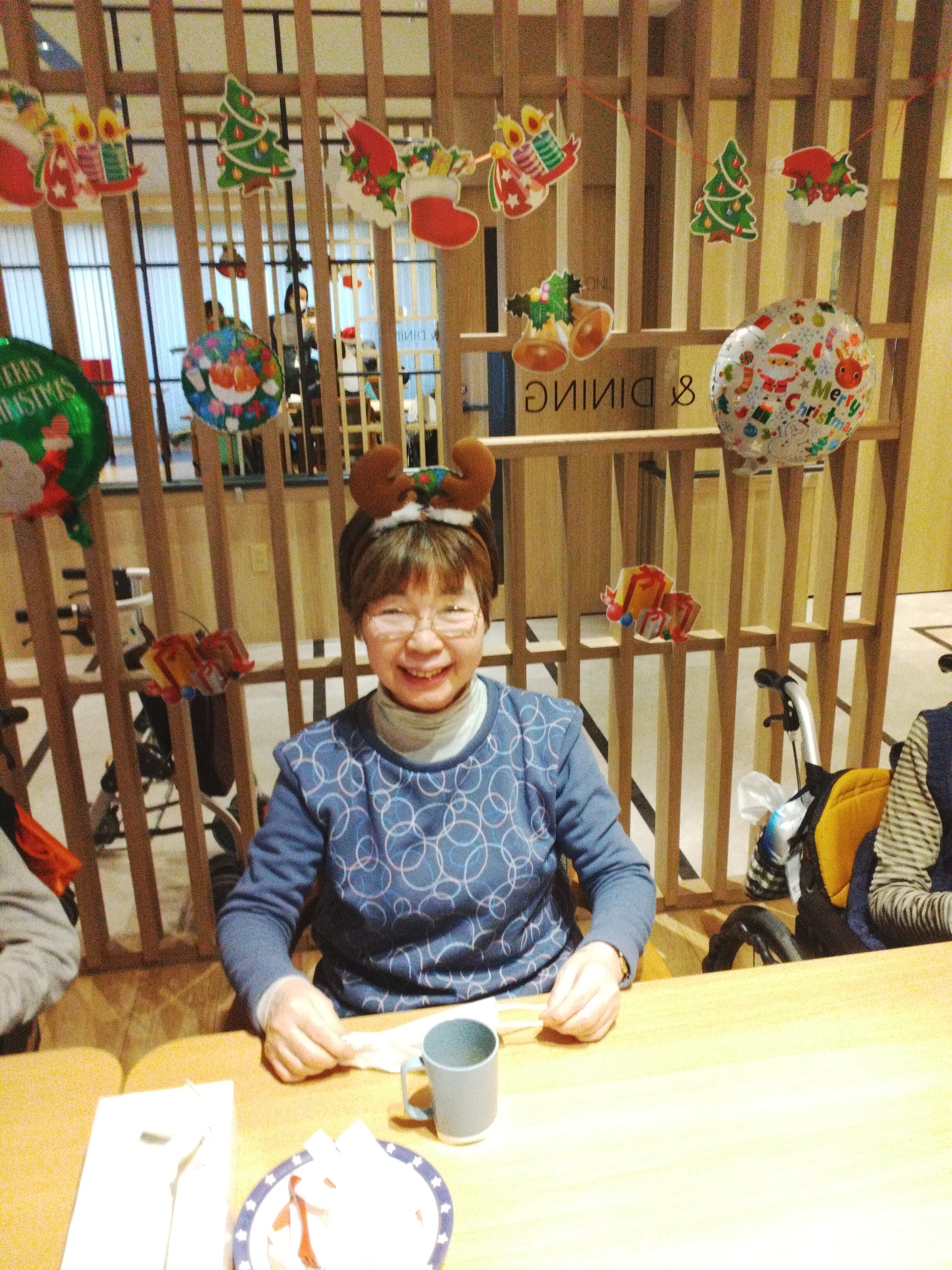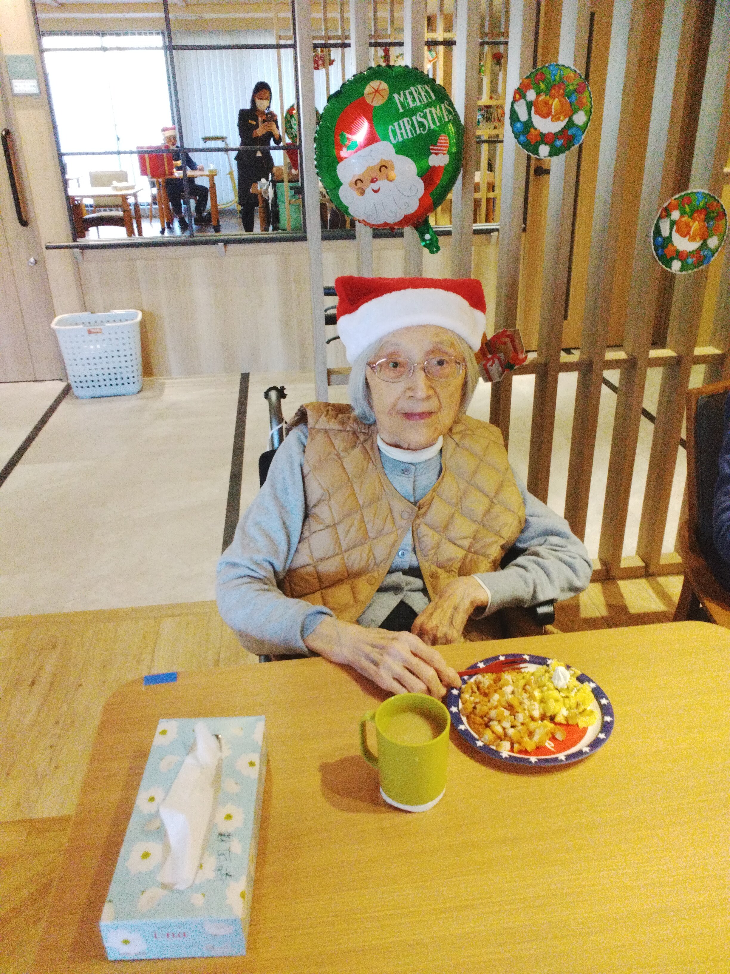 ご入居者皆様にもカチューシャやサンタ帽をかぶっていただきイベントを全員で楽しんでいただきました♪