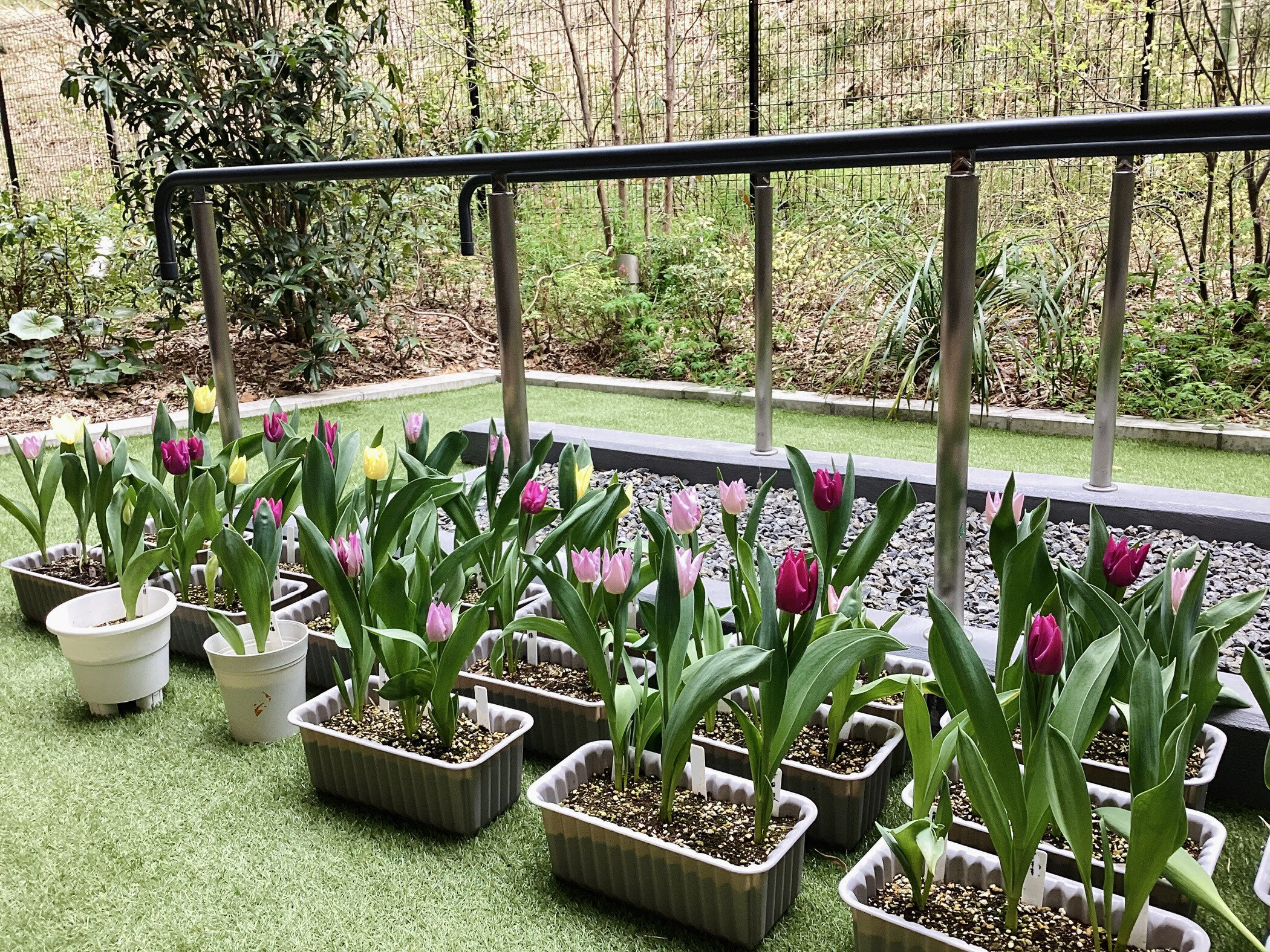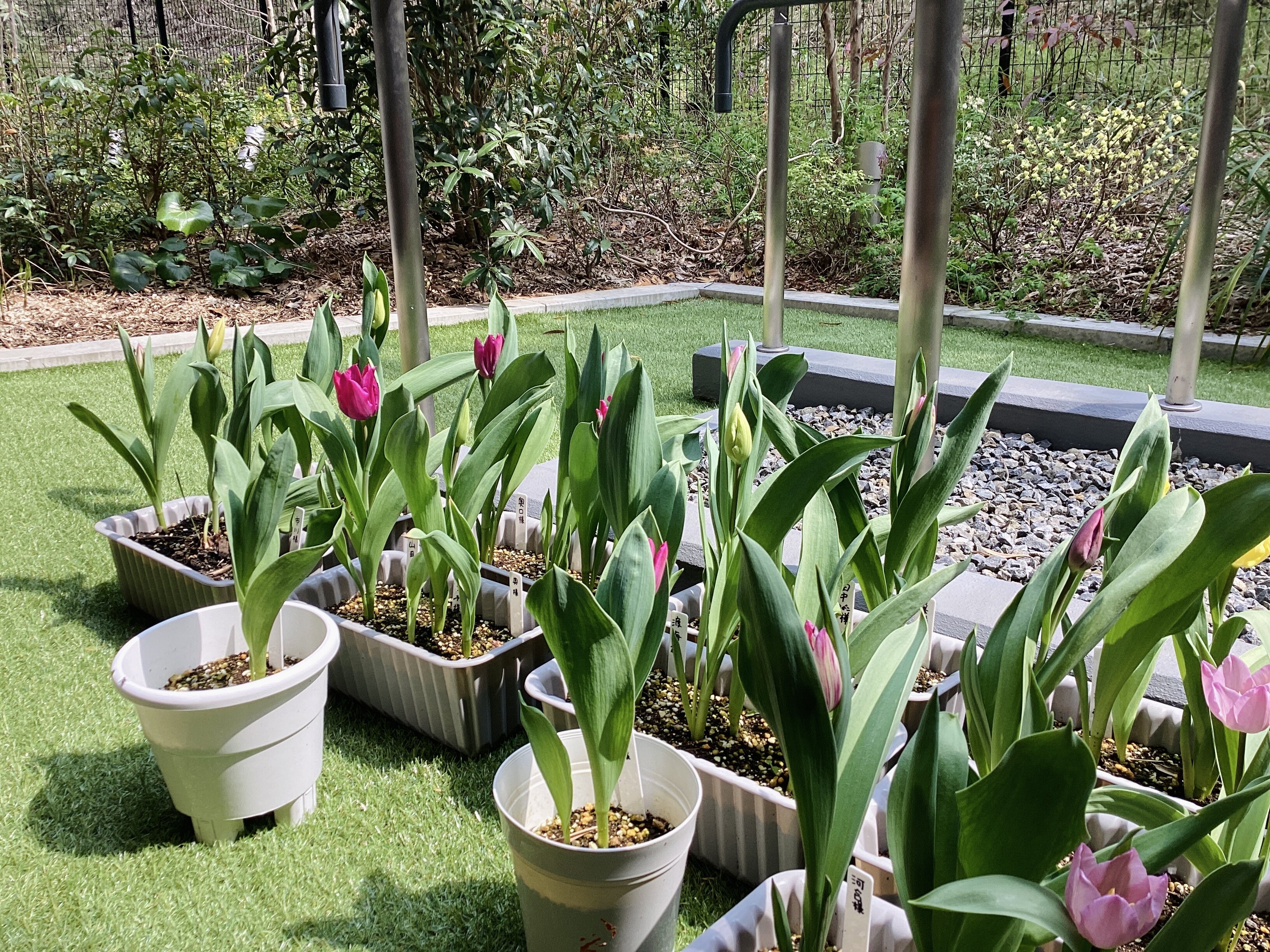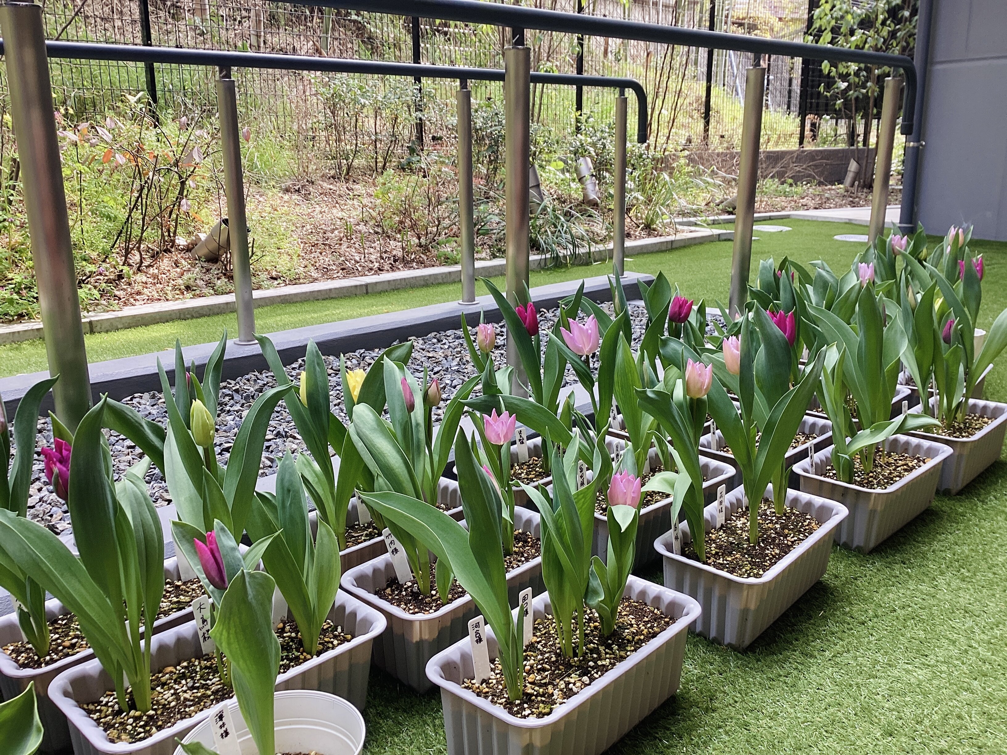 よく見ると、背の低いチューリップから背の高いチューリップまで様々です。