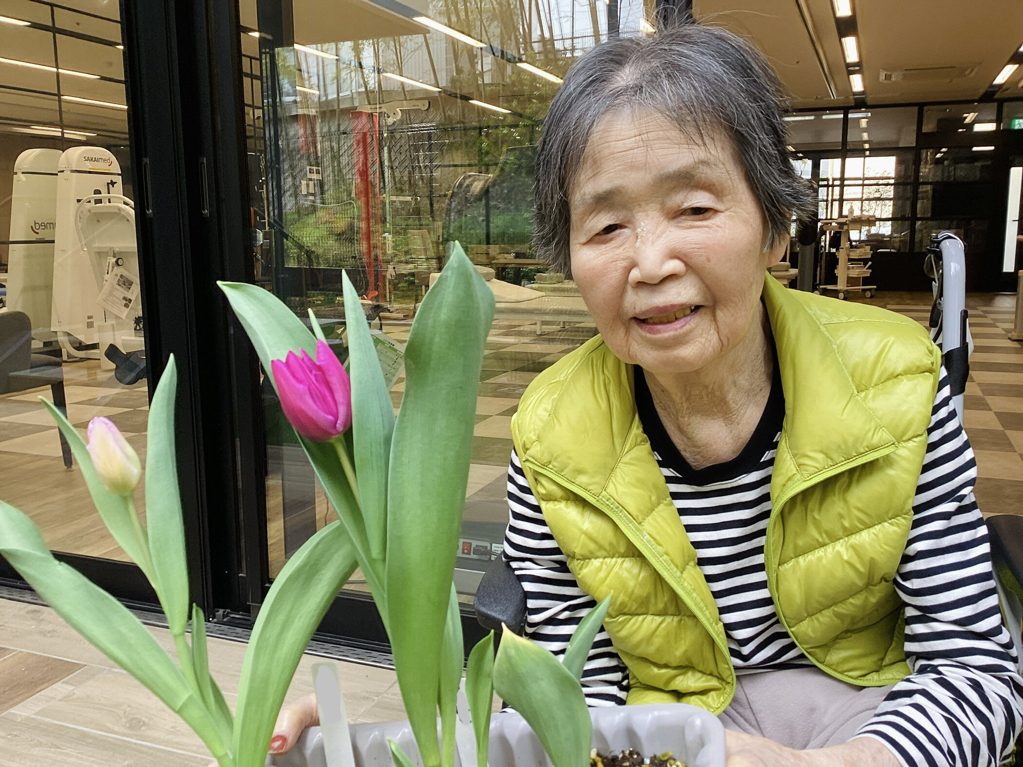 皆さま、昨年11月にご入居者の皆様と一緒に一粒ずつ大切に手植えしたチューリップの球根たちをご存知でしょうか・・