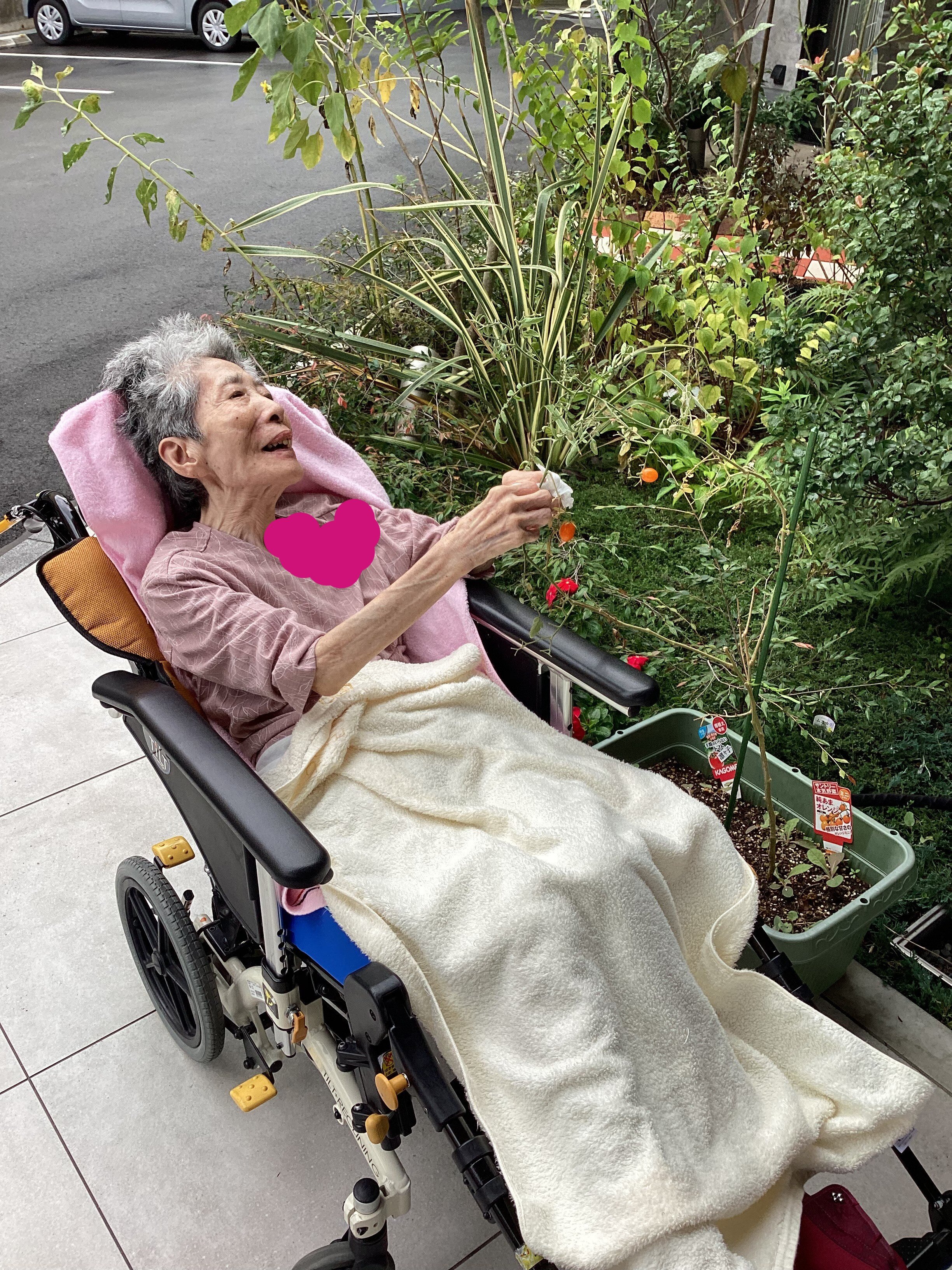 つい先日、外気浴に行ったついでに入居者様にトマトを収穫していただきました♪