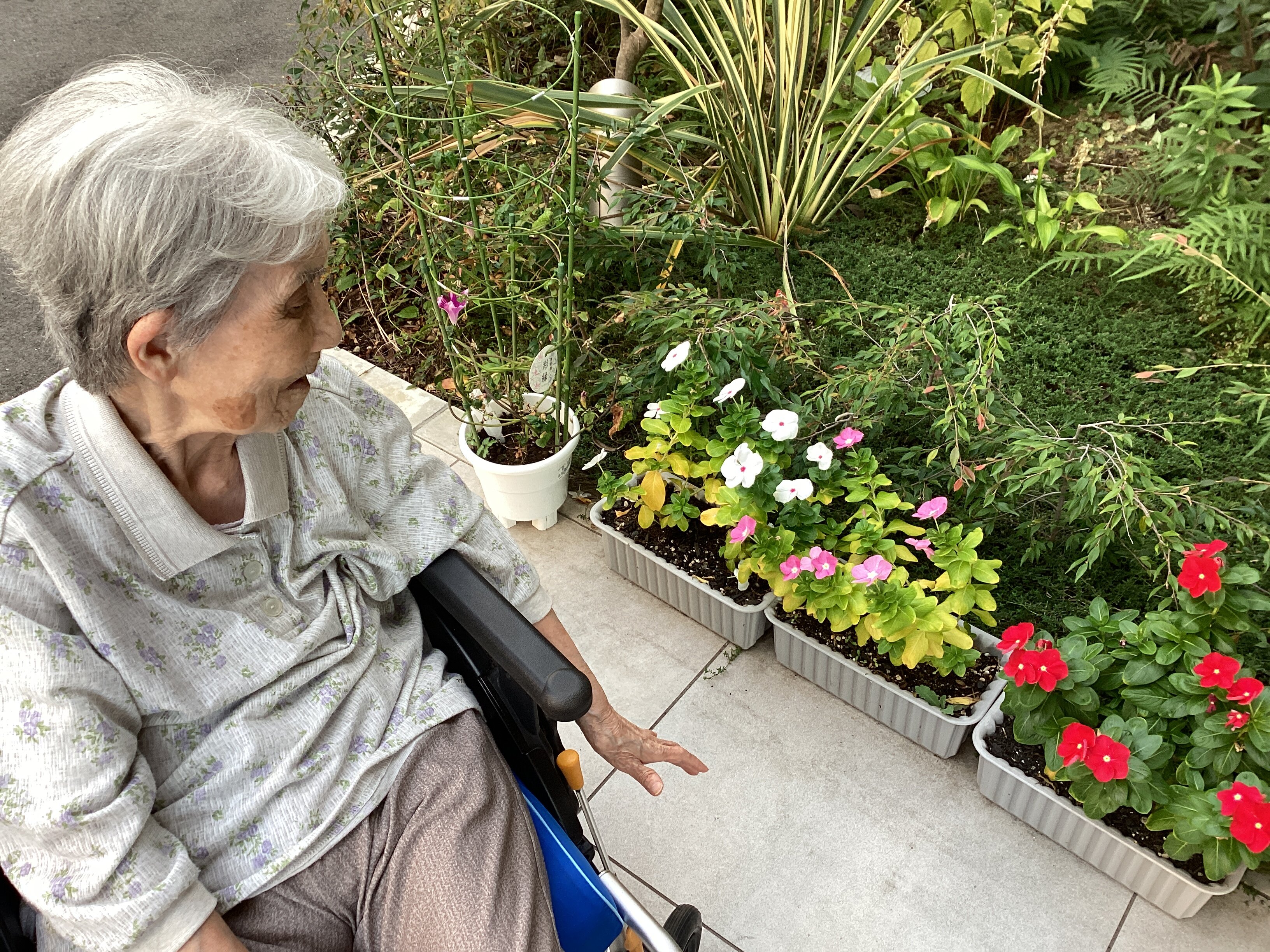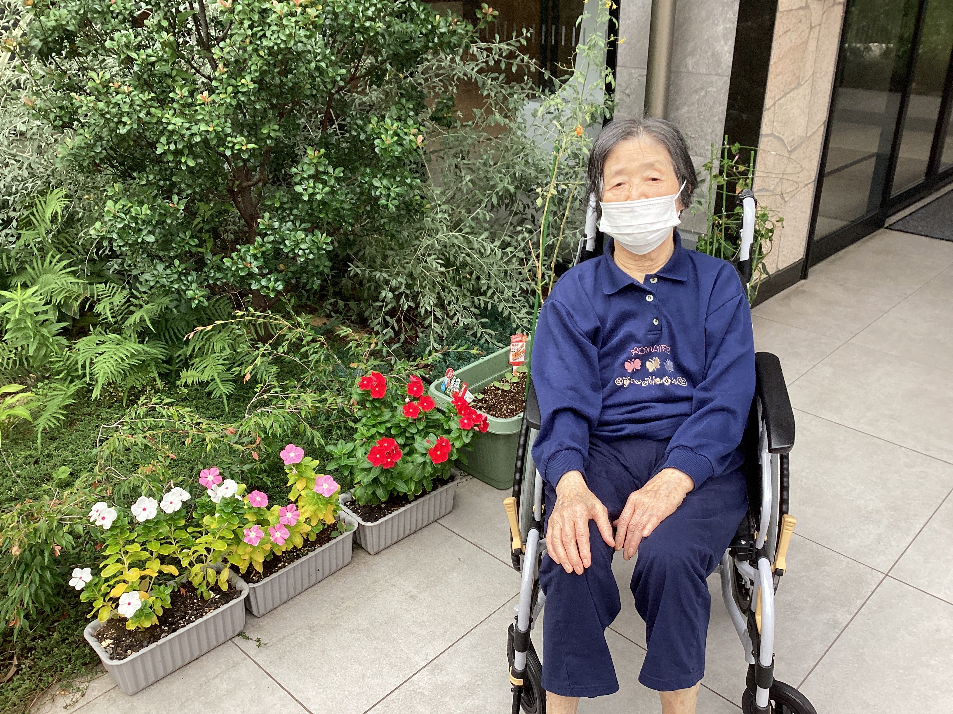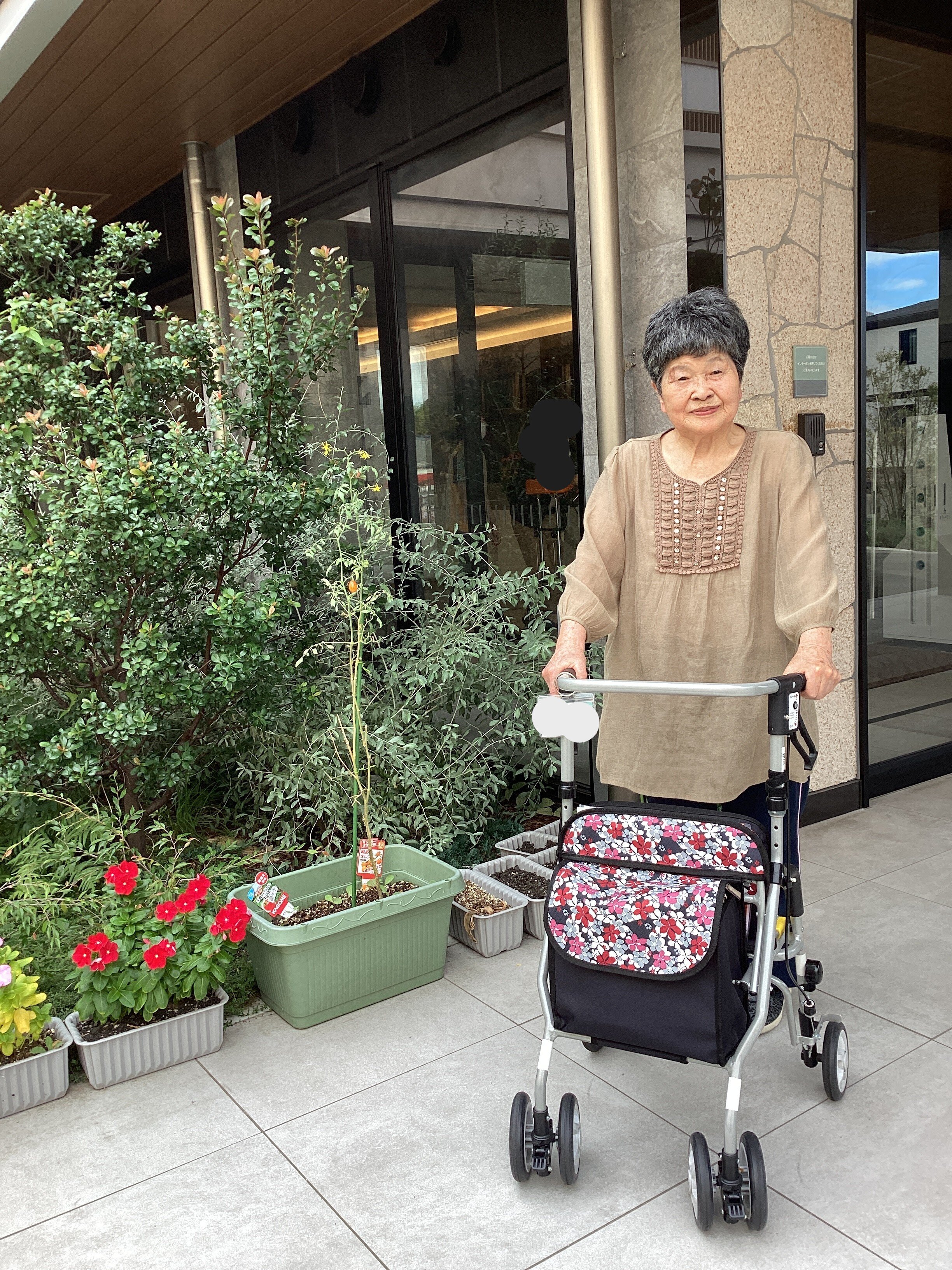 さて今回は、リハビリ時間を使って屋外歩行や外気浴をしているご入居者様の様子を掲載させていただきます♪