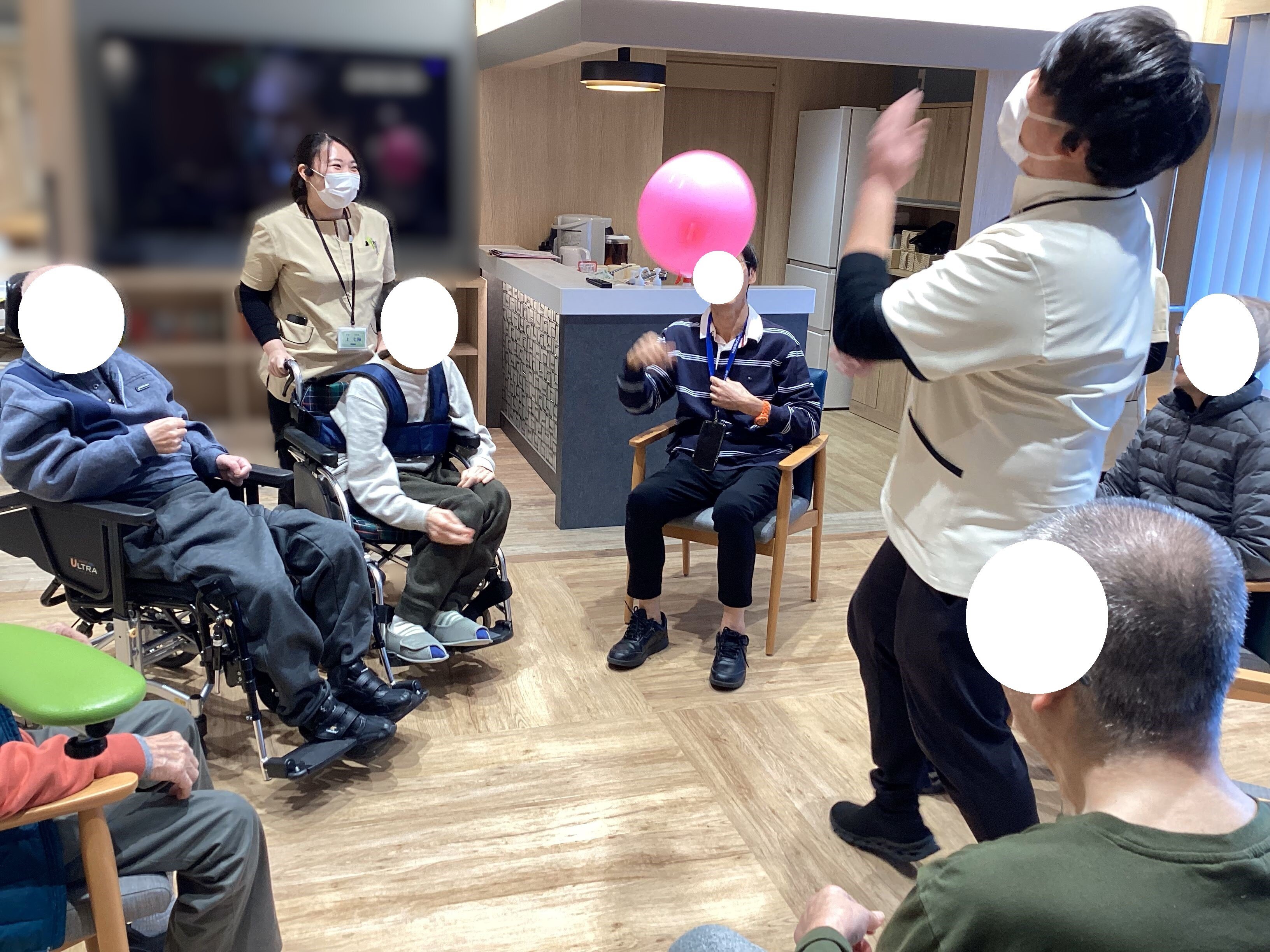 今回は先日に行ったレクリエーションの風船バレーのご様子をご覧いただきます(*'ω'*)