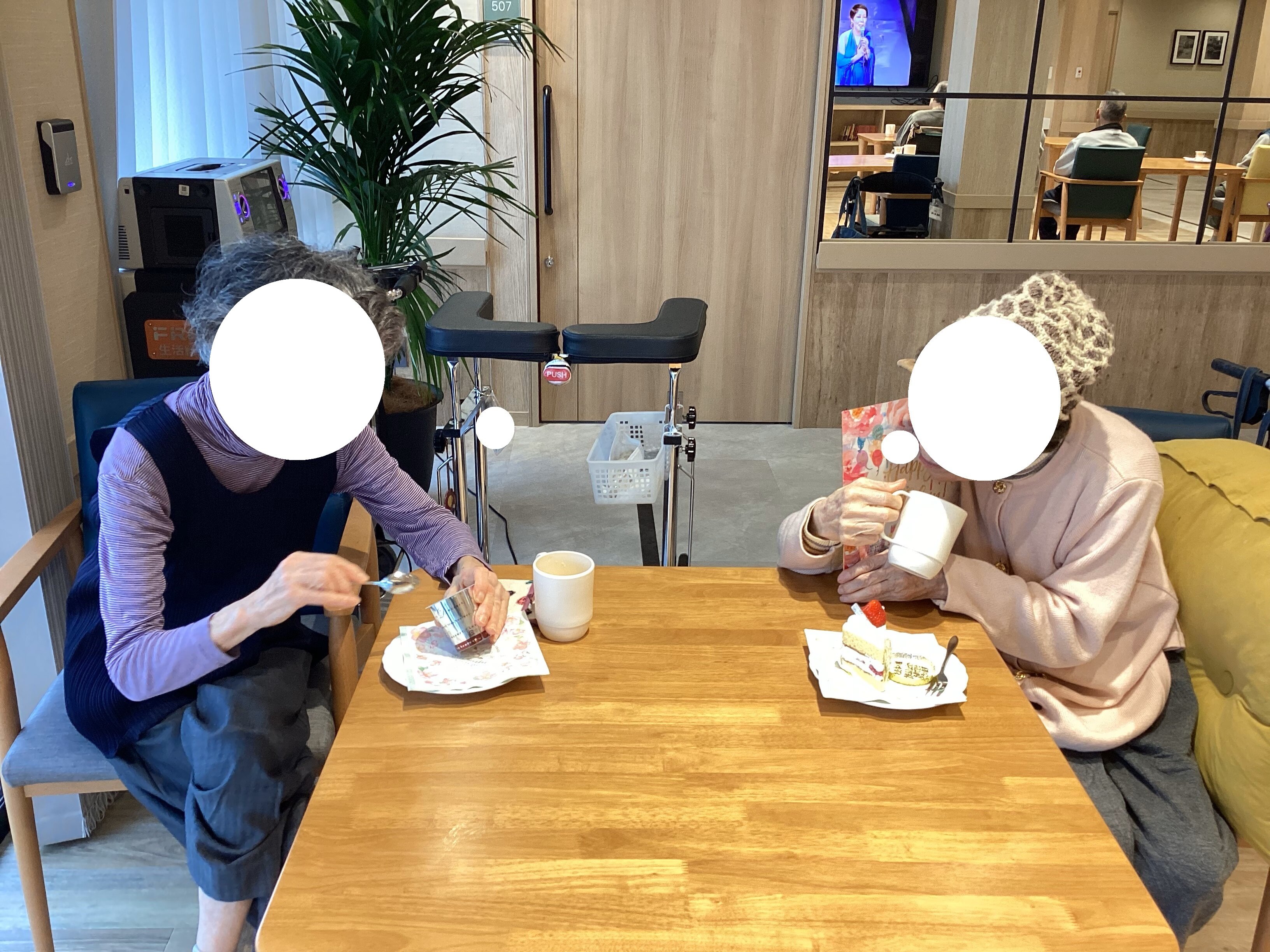 女性の入居者様はおしゃべりを楽しみながら(*´▽`*)