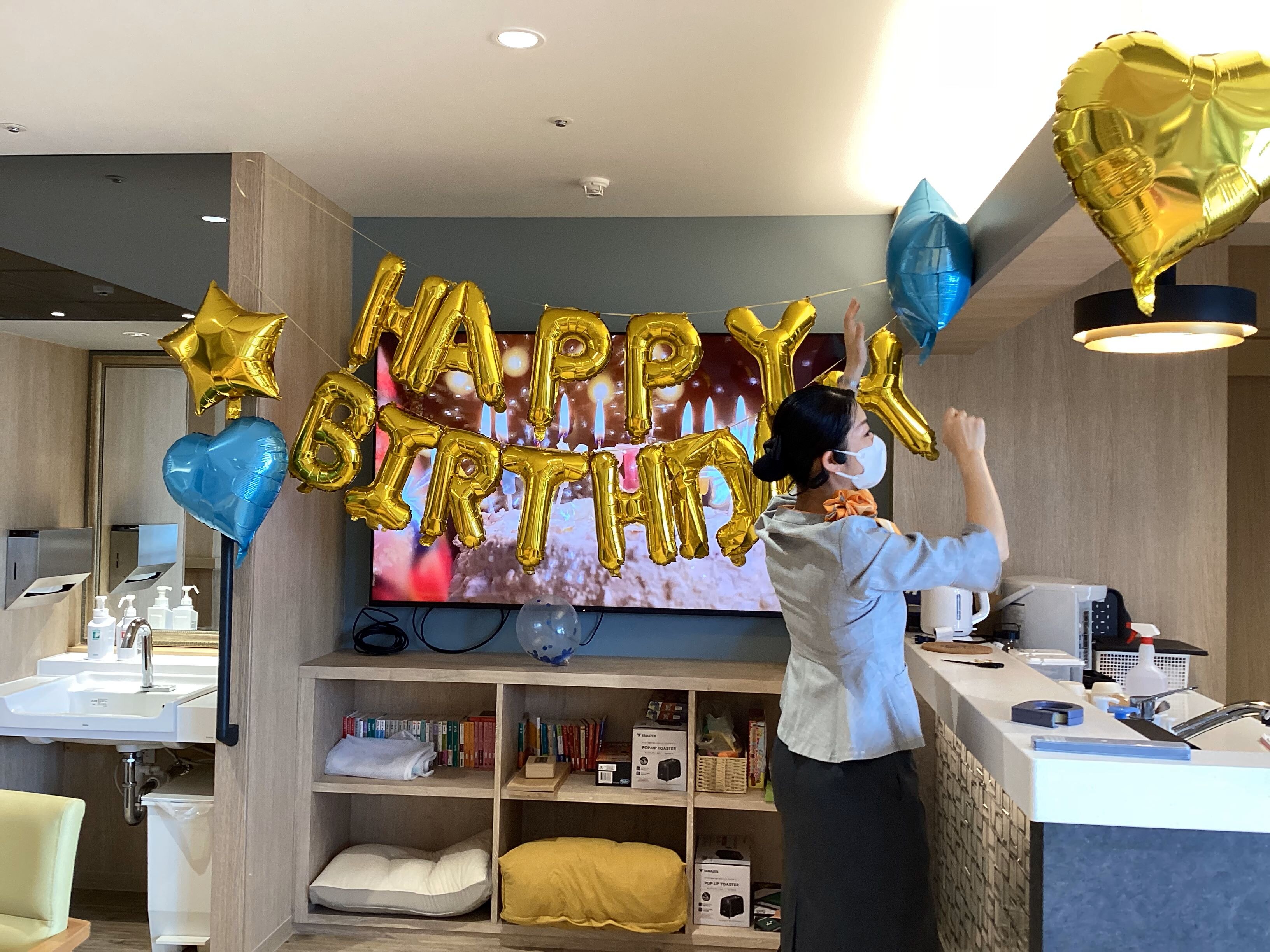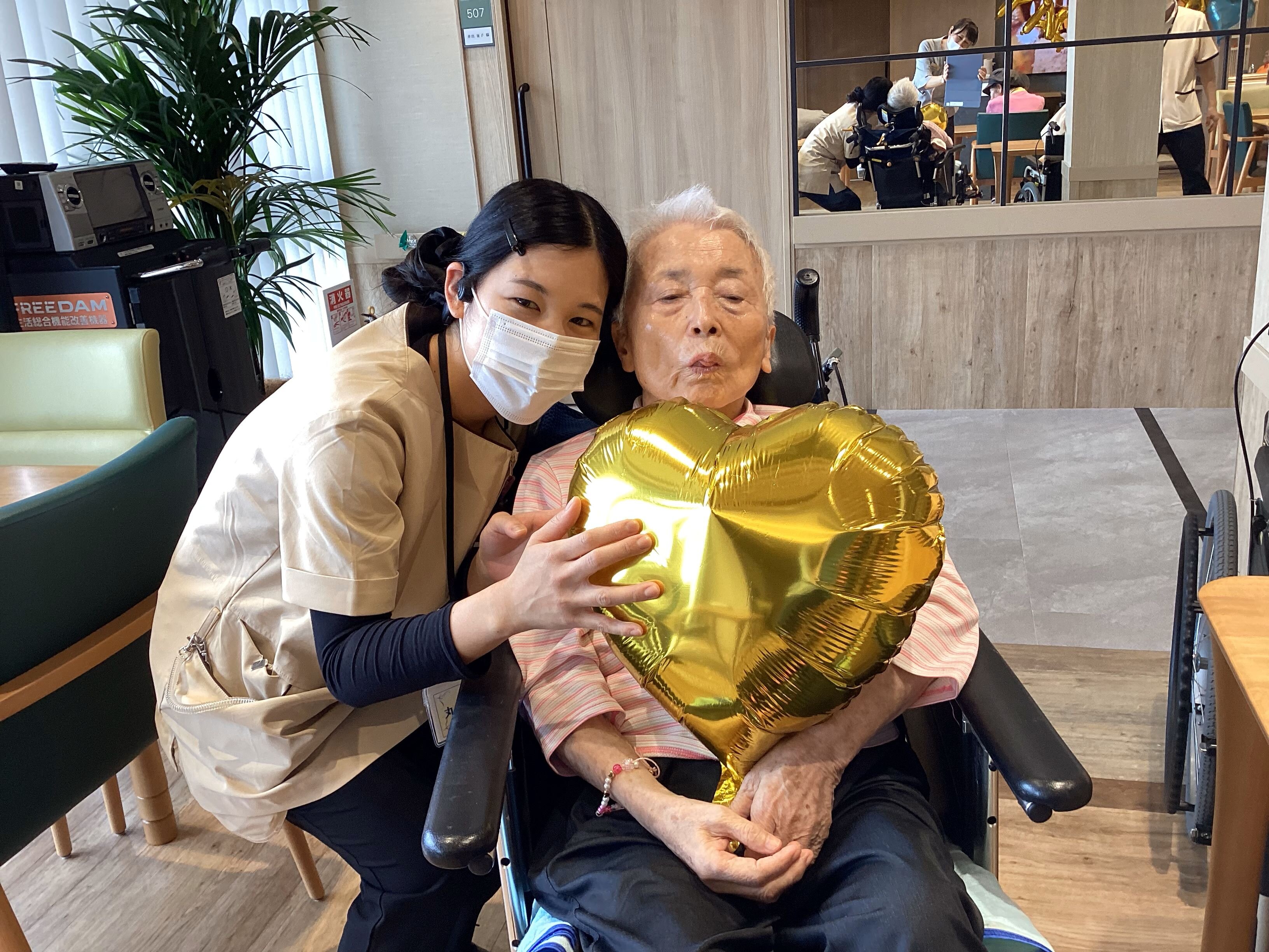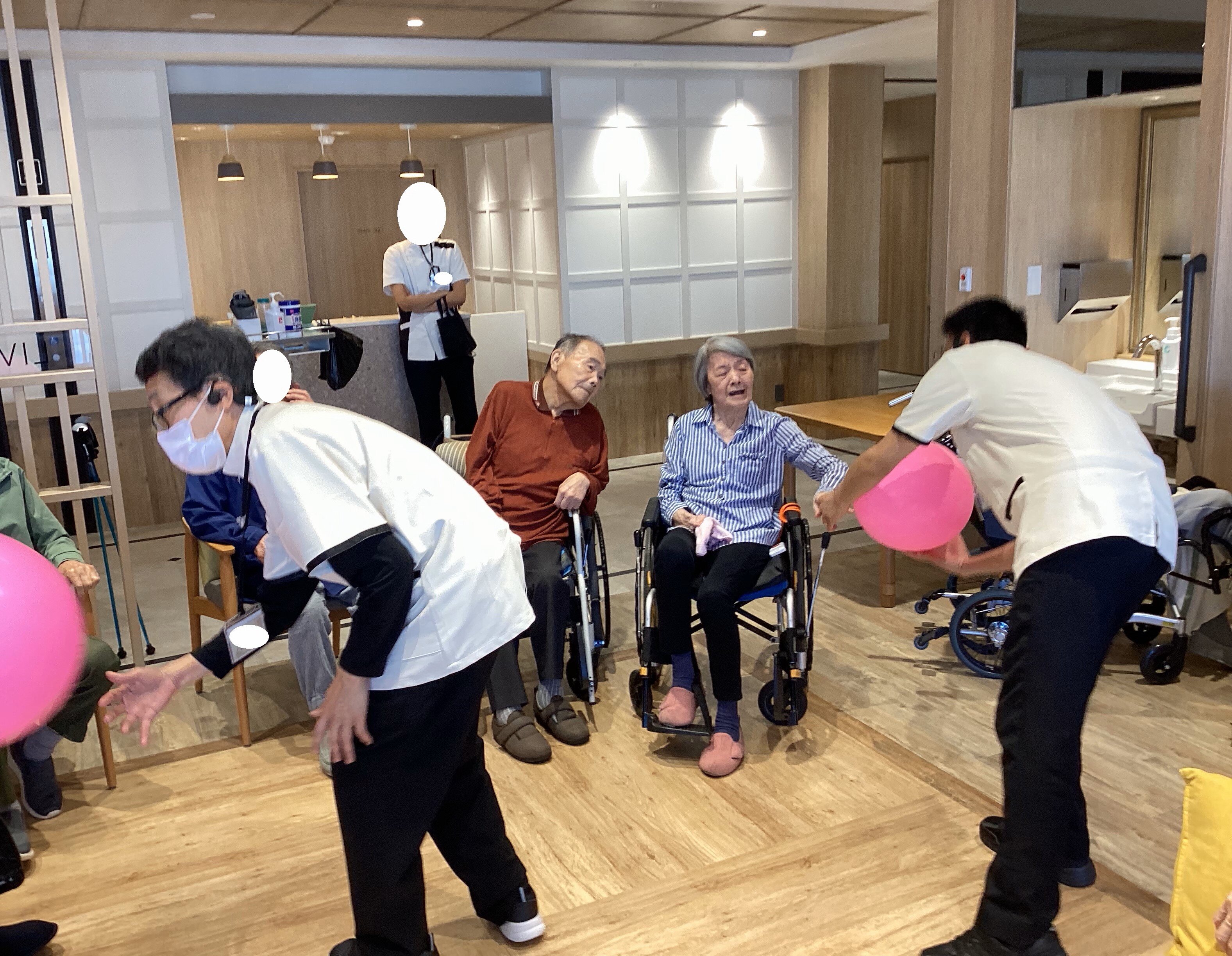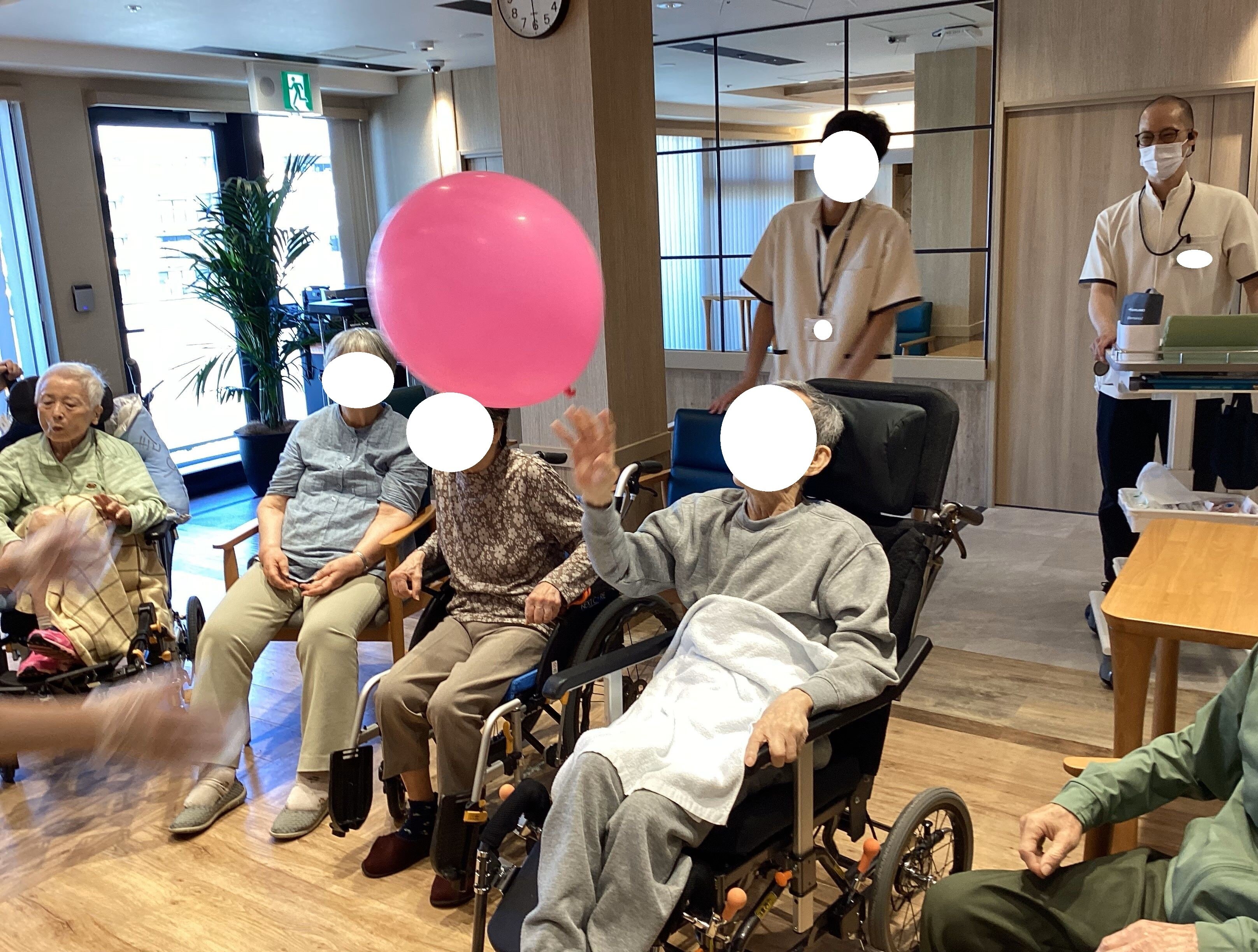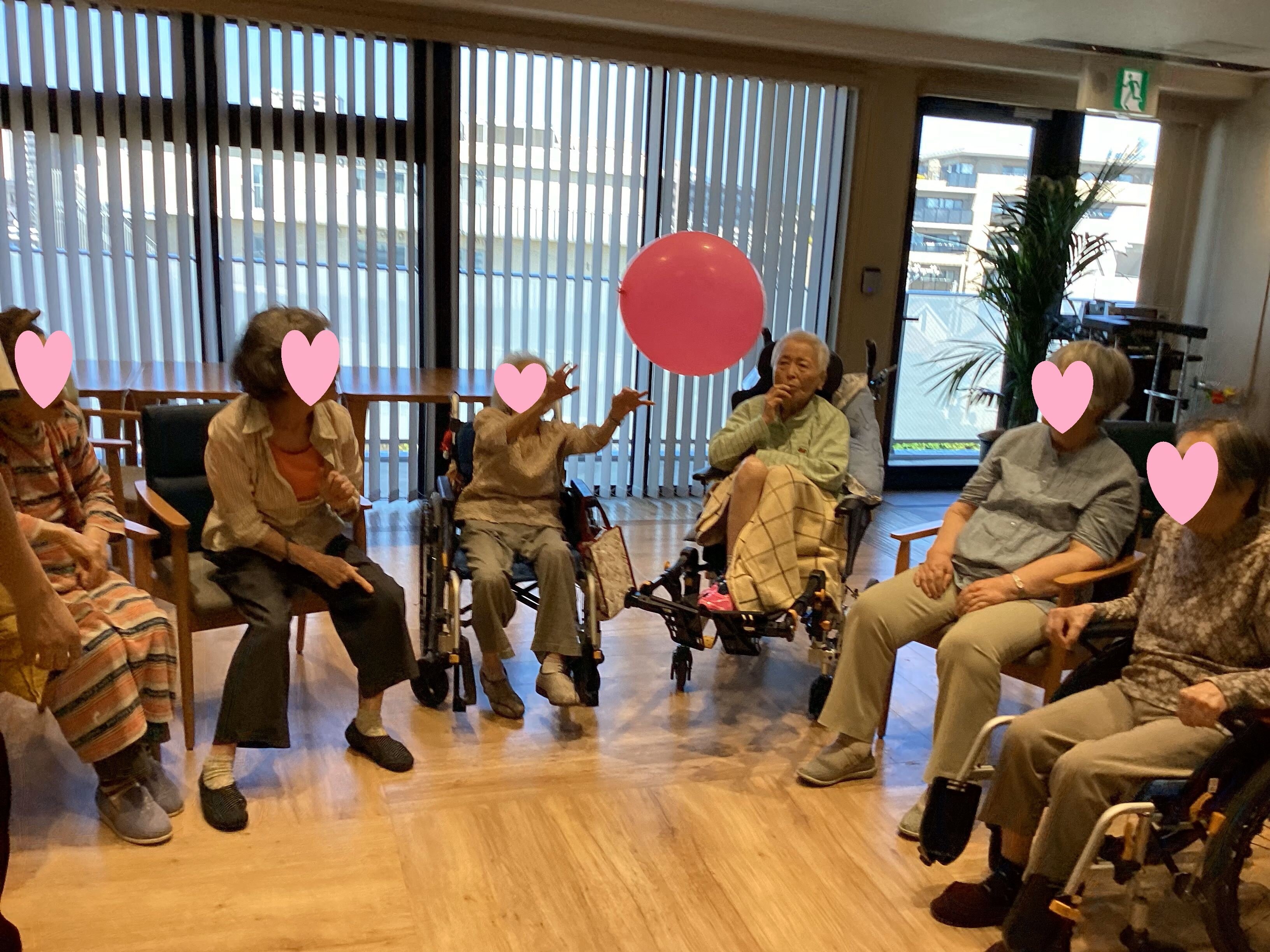 風船はどこに飾ろうかなと入居者様が一緒に考えてくださいました♪