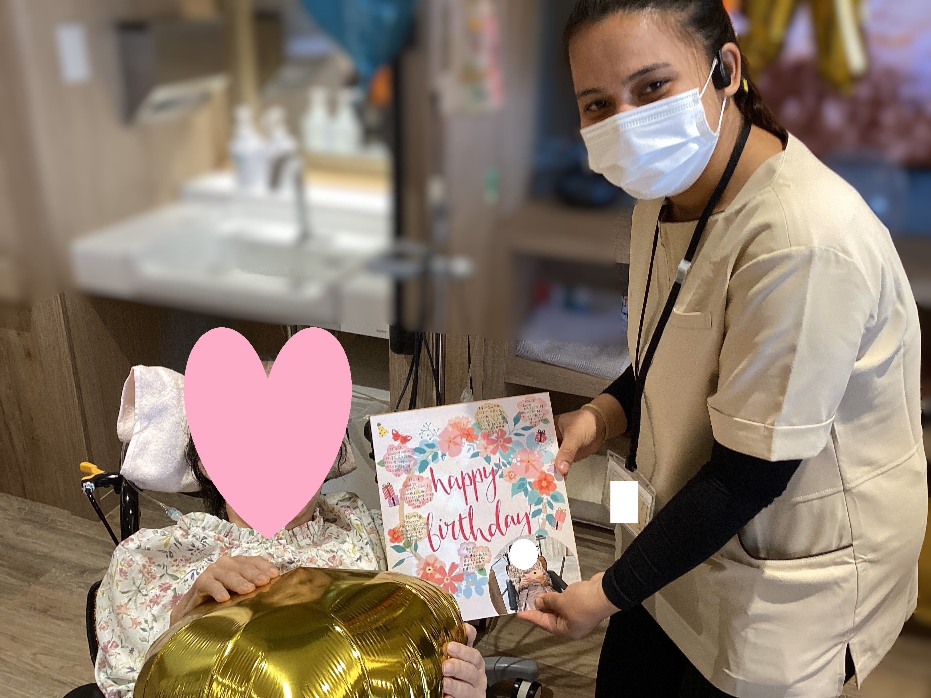 職員が書いたメッセージカード入りの色紙をプレゼント♡
