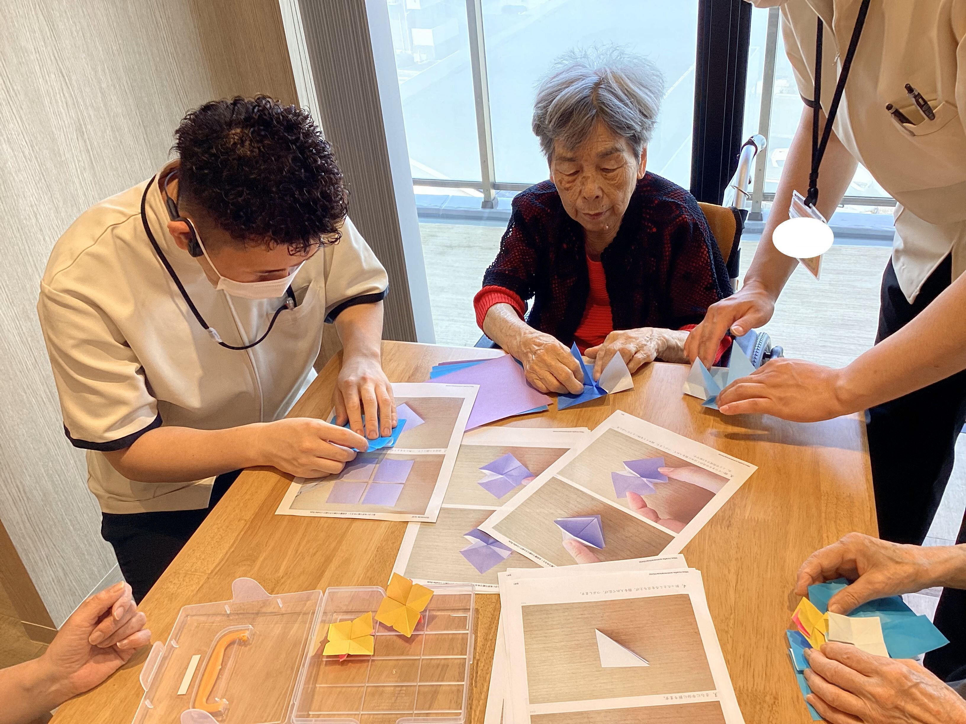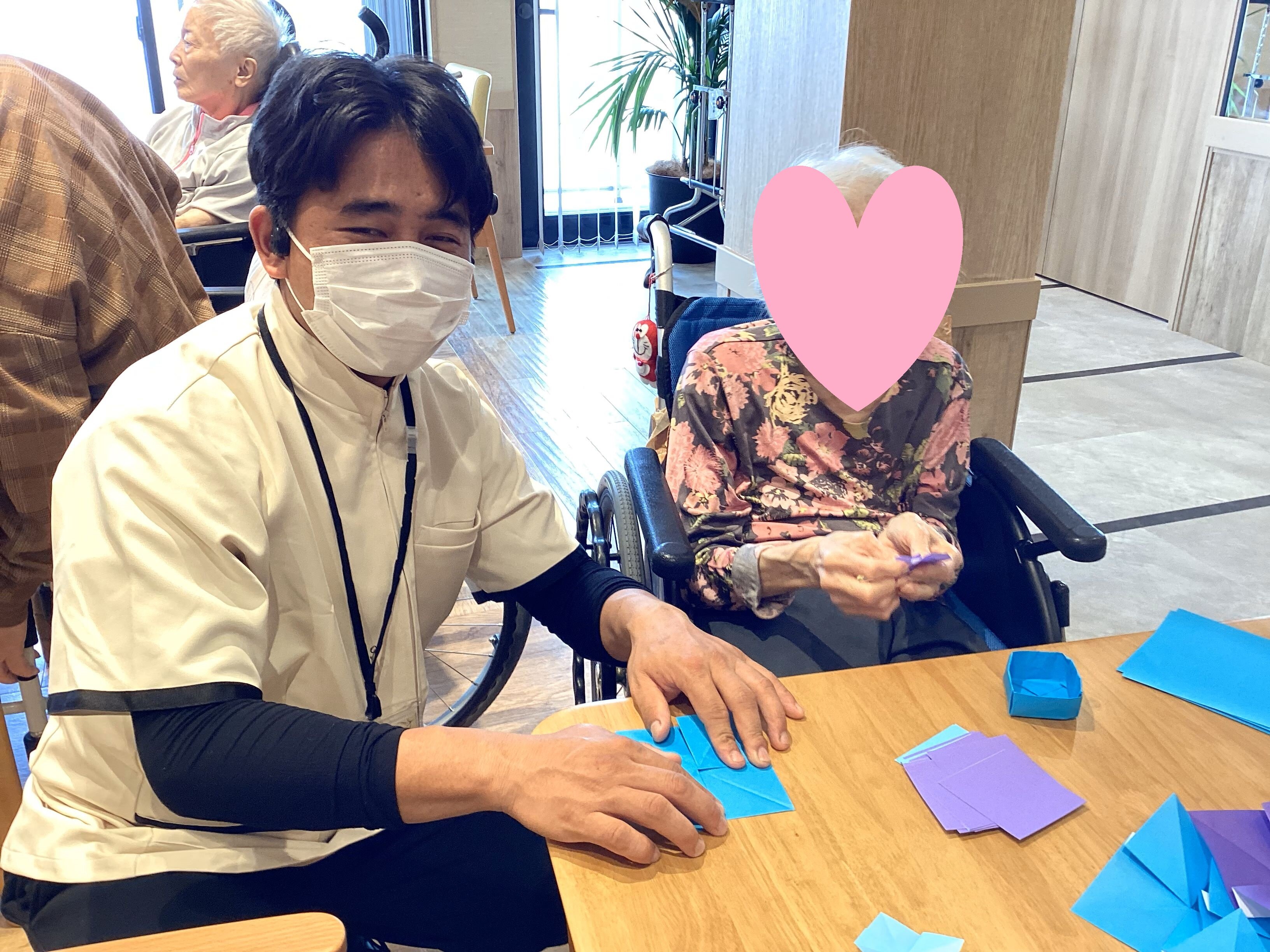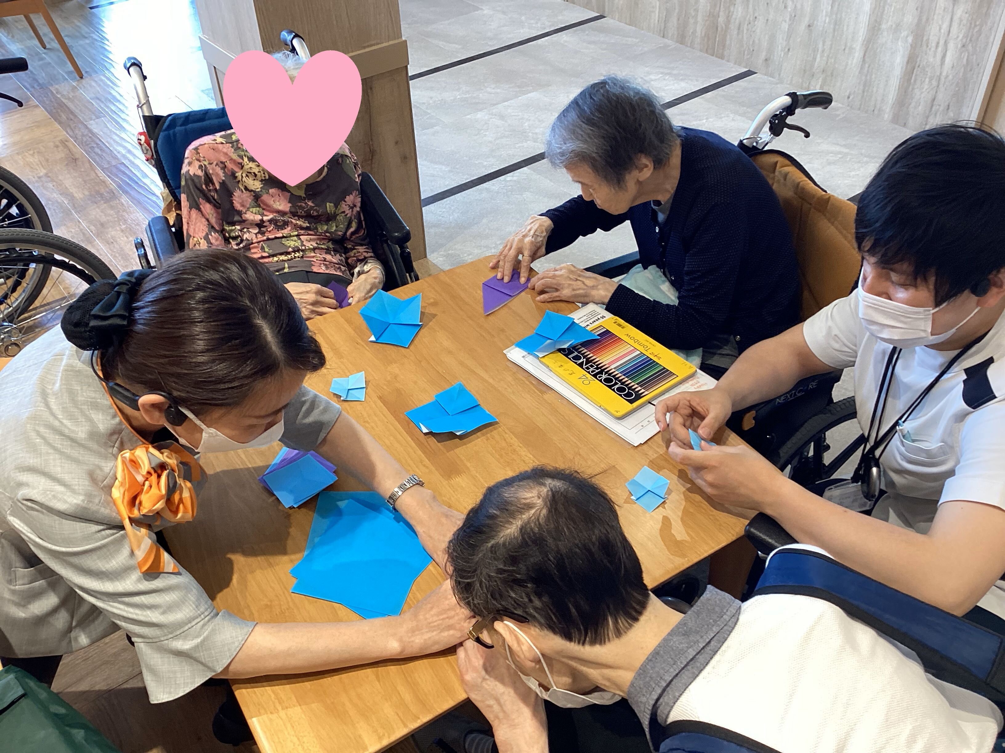 今回はご入居者の皆さまと折り紙を行った際のご様子です(^_^)/