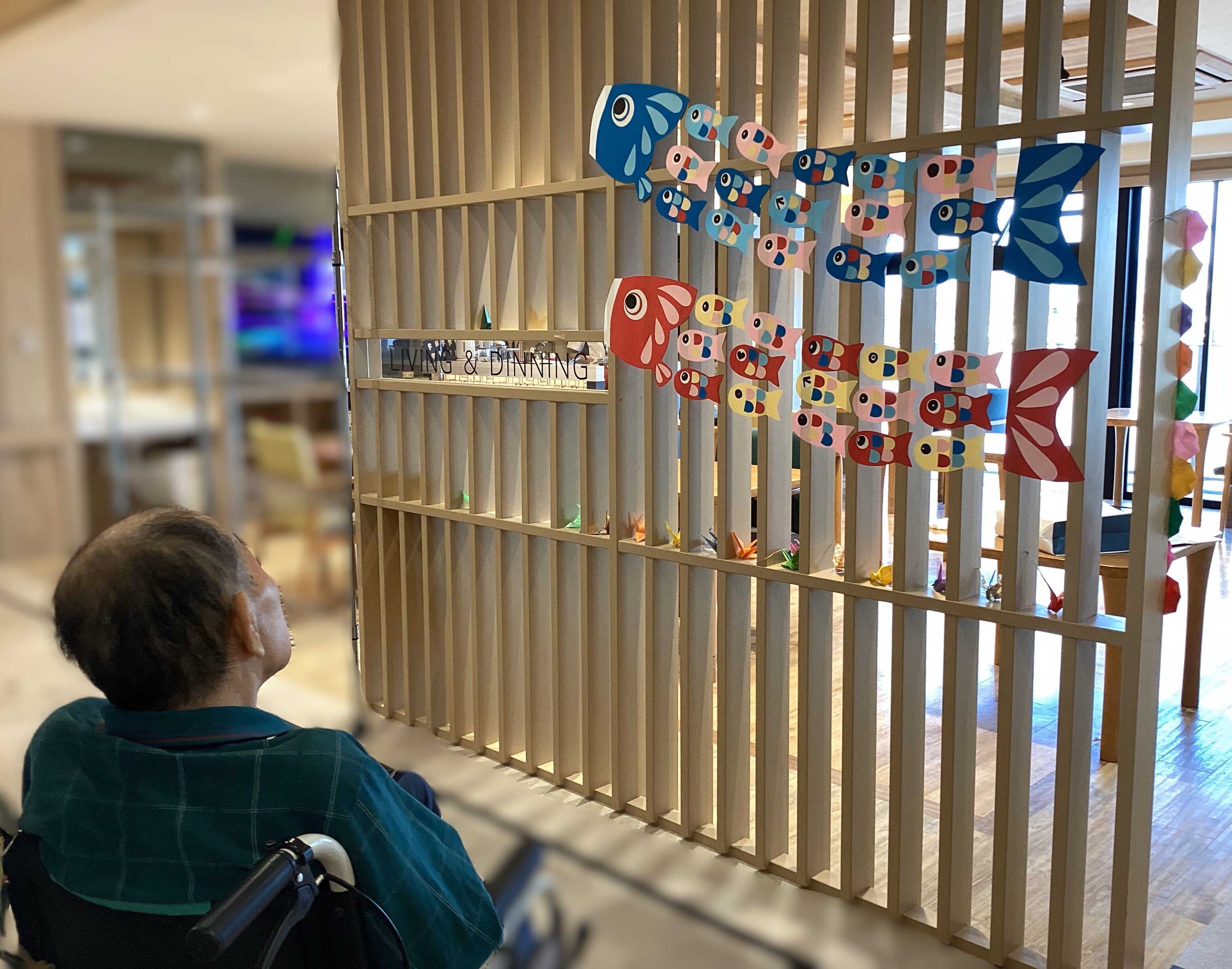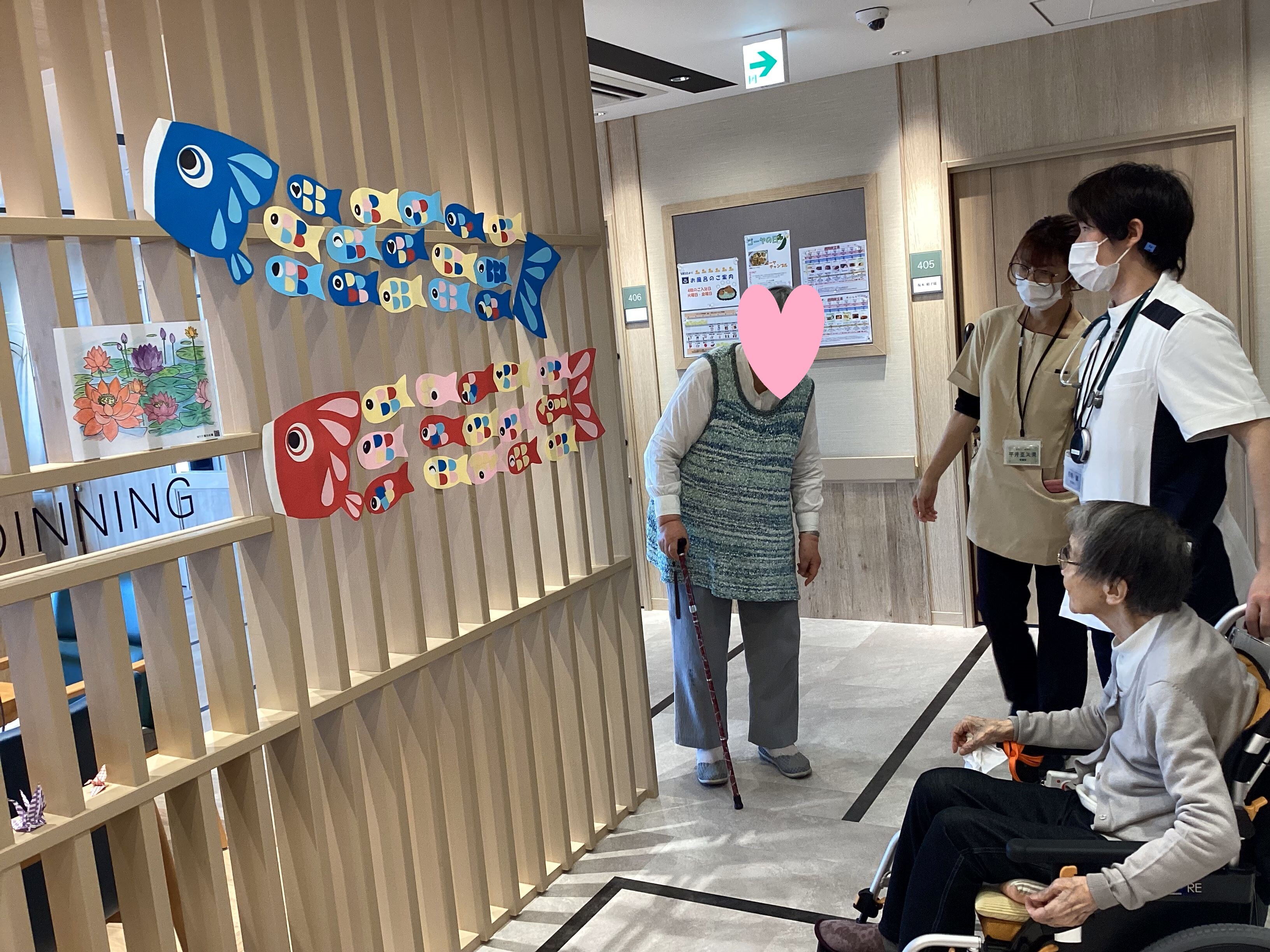 ついに!入居者様と作った鯉のぼりの壁面飾りが完成致しました(^^)/